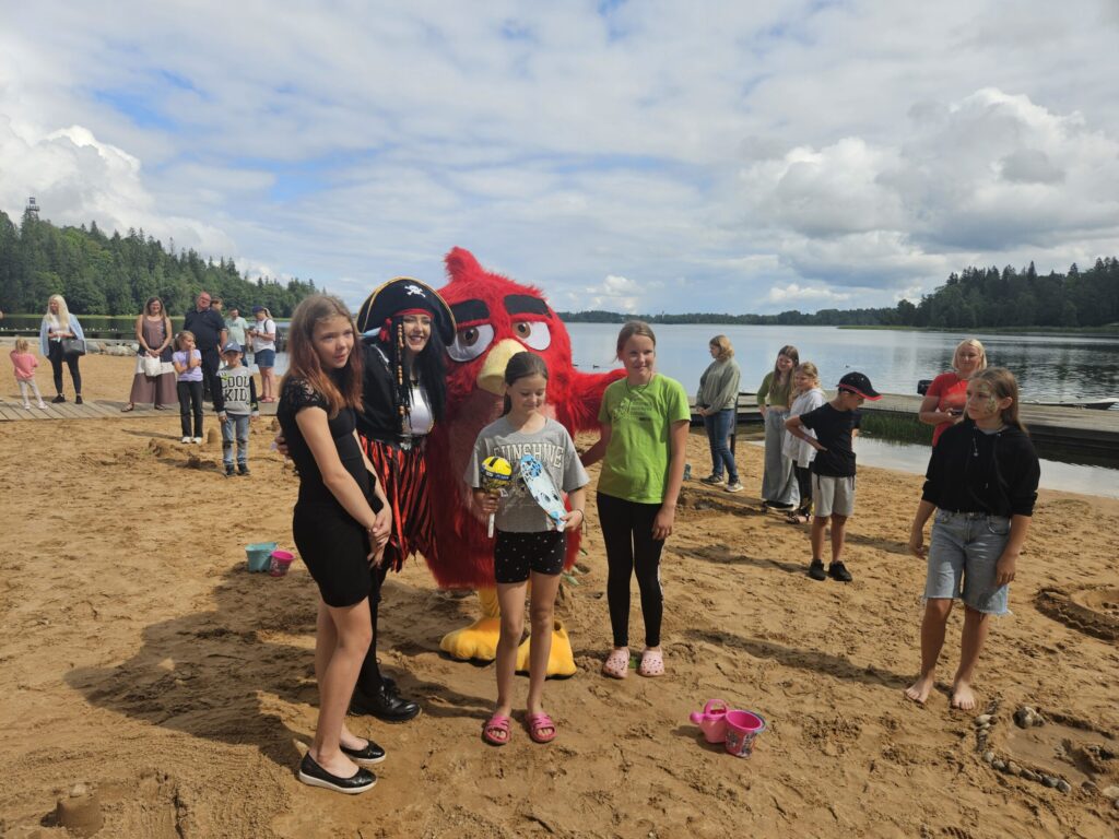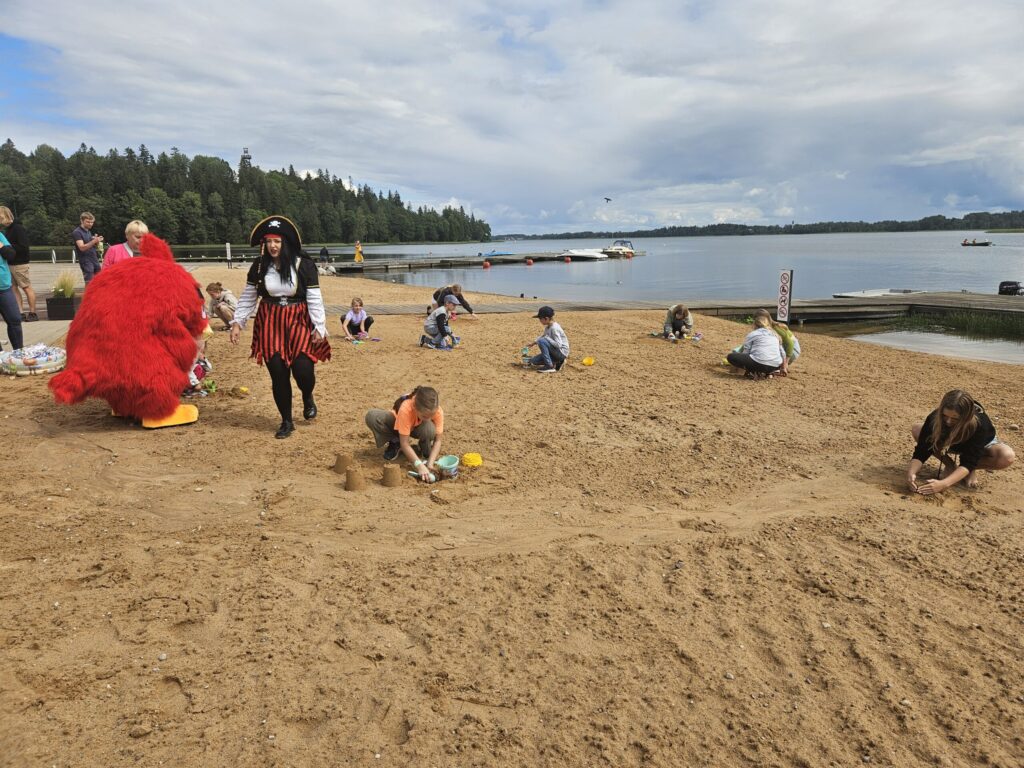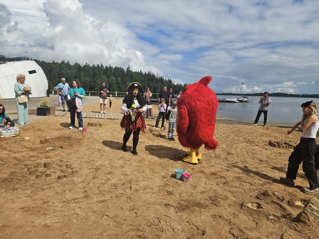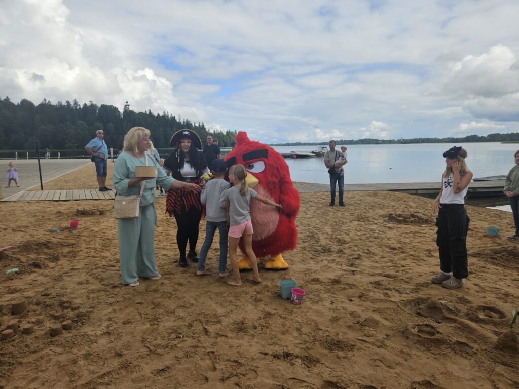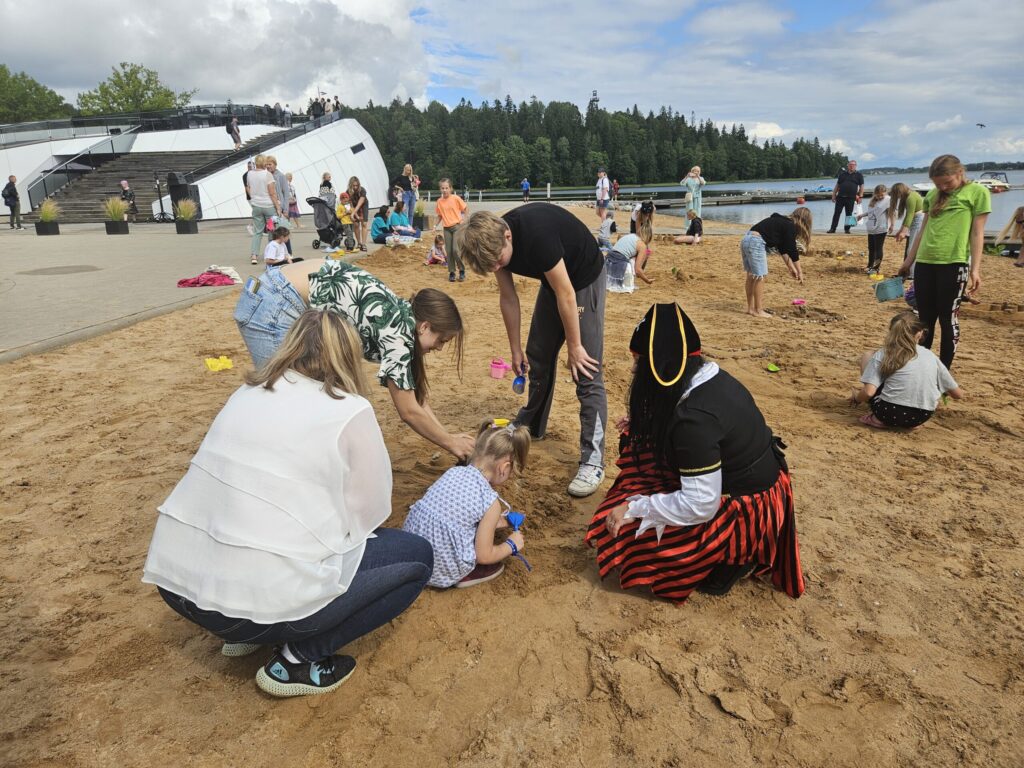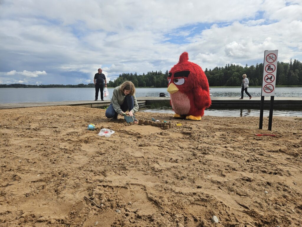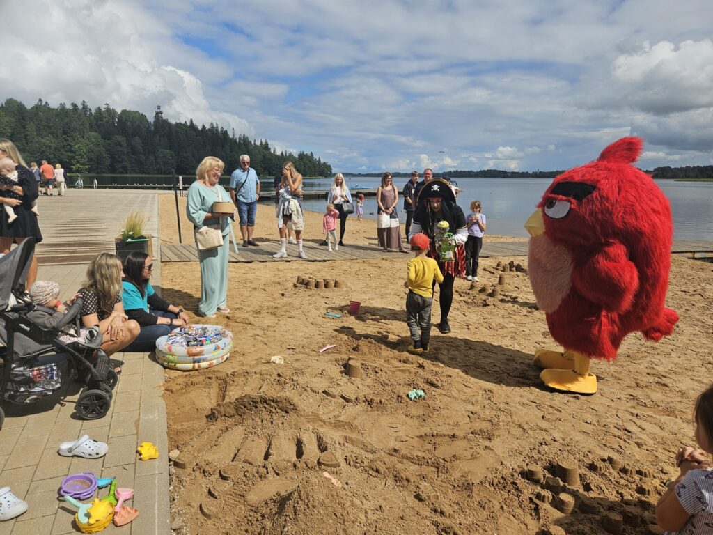 Alūksnes ezera krastā top pilsētiņa no bērnu veidotām smilšu pilīm. Visi aktīvi iesaistās un parāda savas radošās celtniecības prasmes. Pasākumu jautrāku padara pirātu meitene un niknais putns – viņi arī uzrauga visus mazos būvniekus darba procesā.