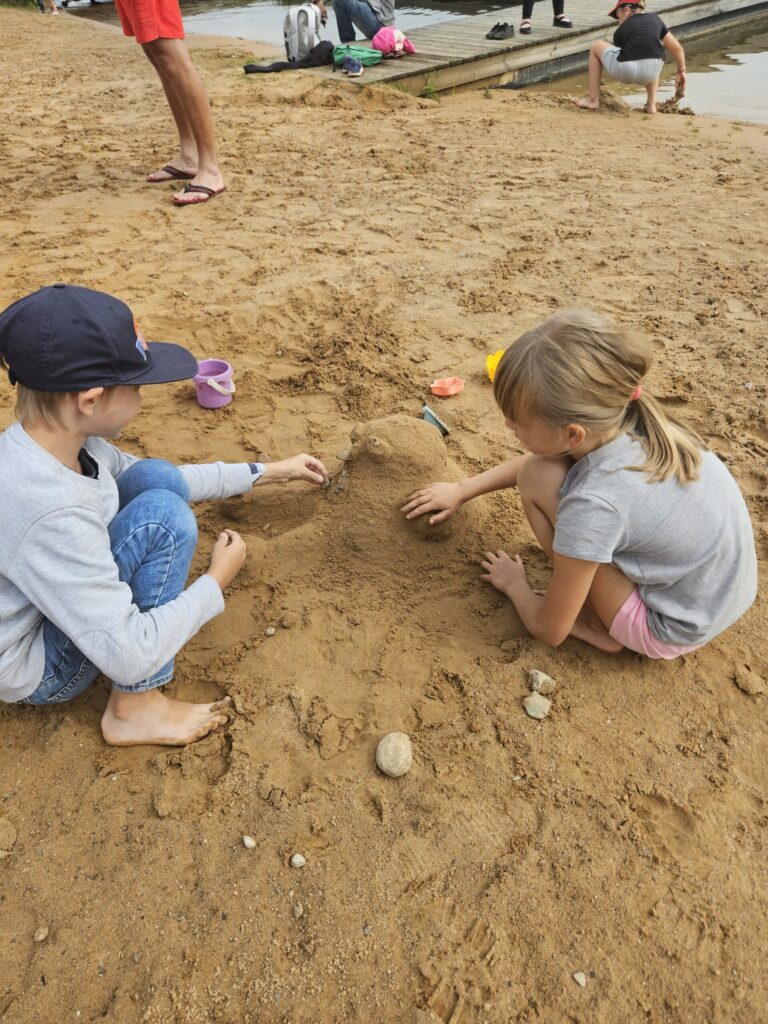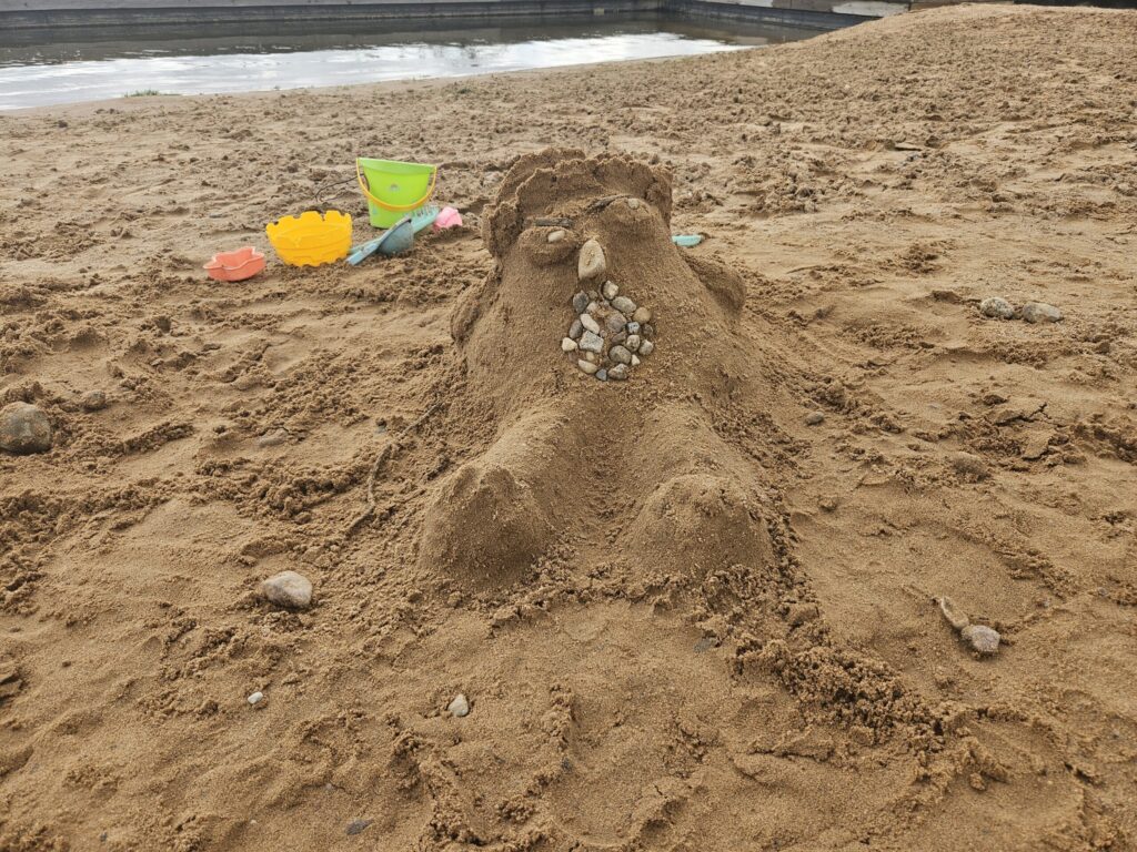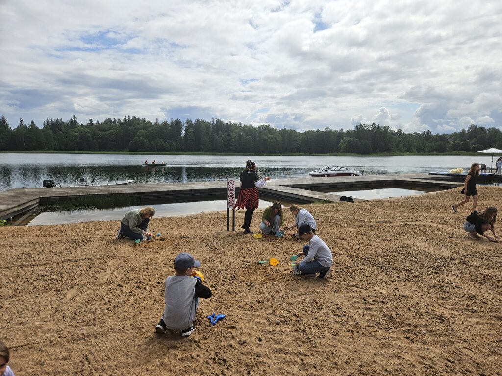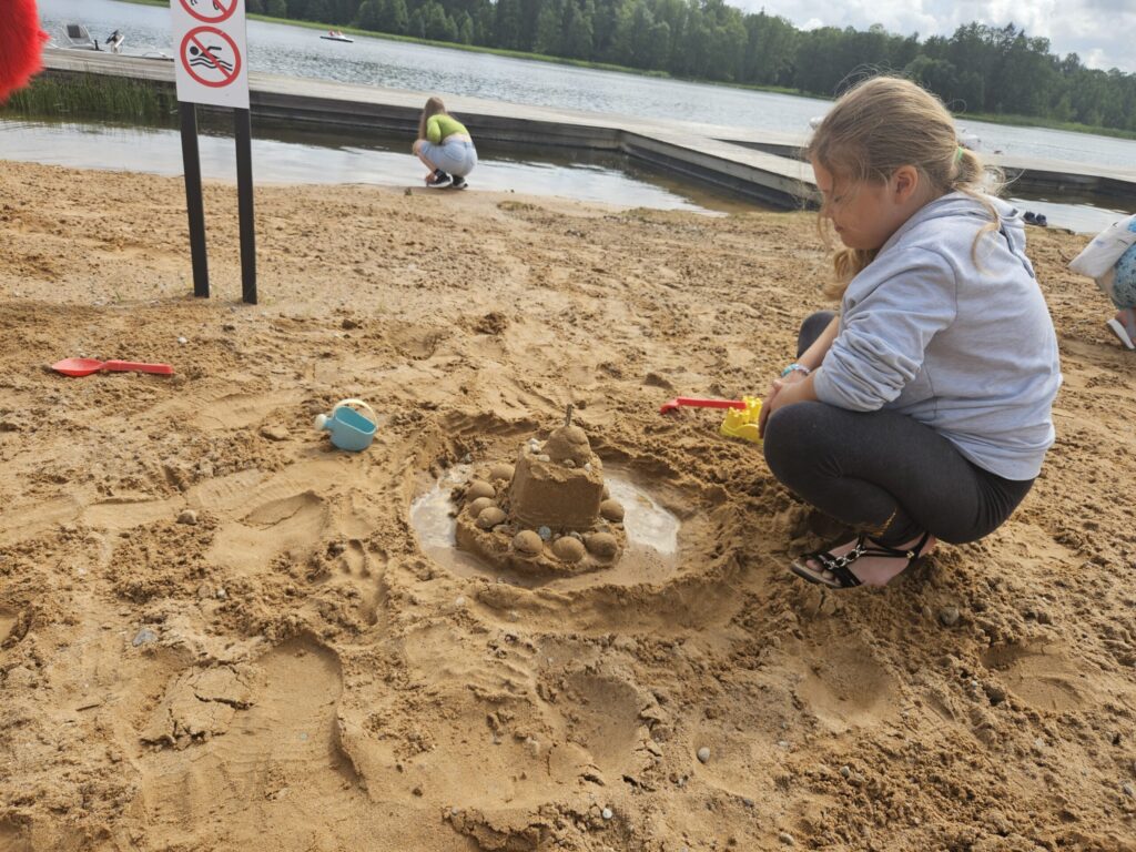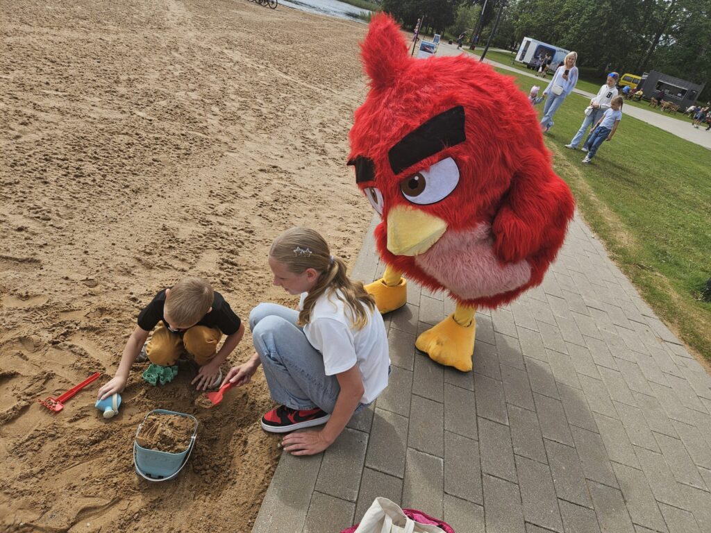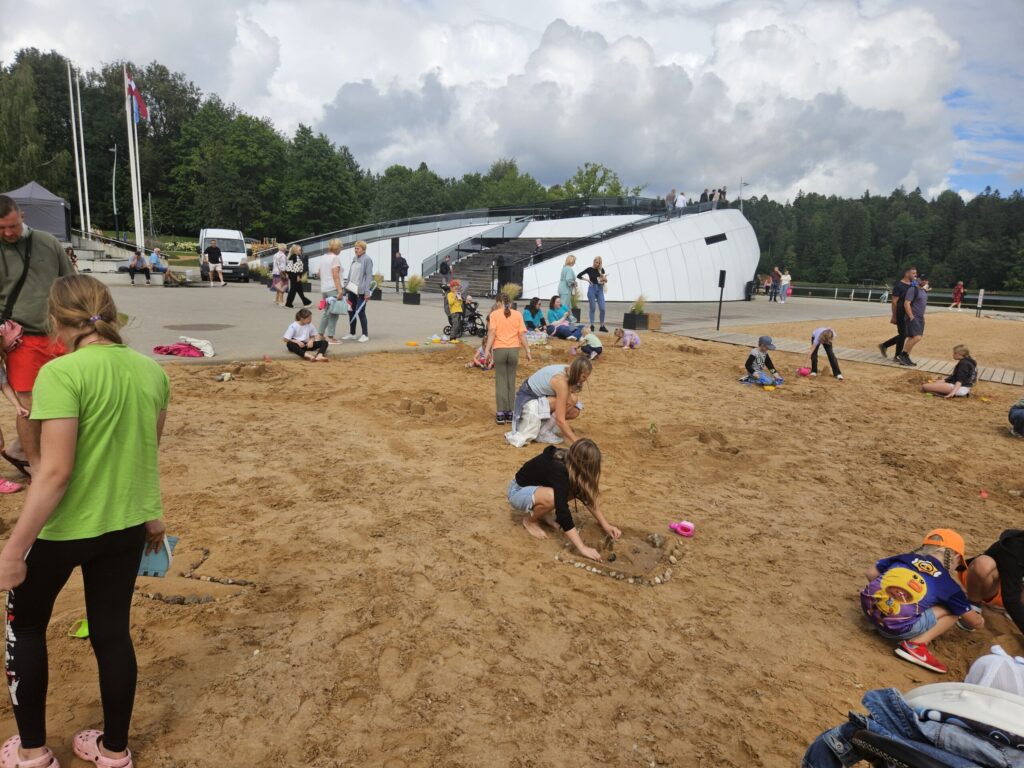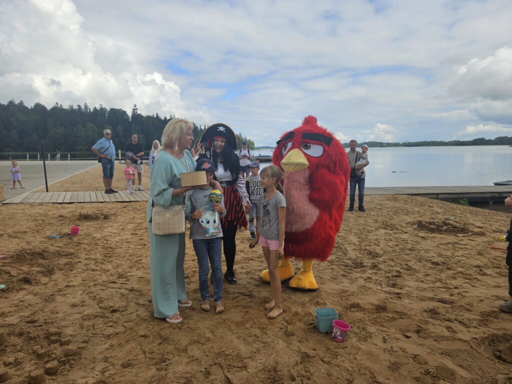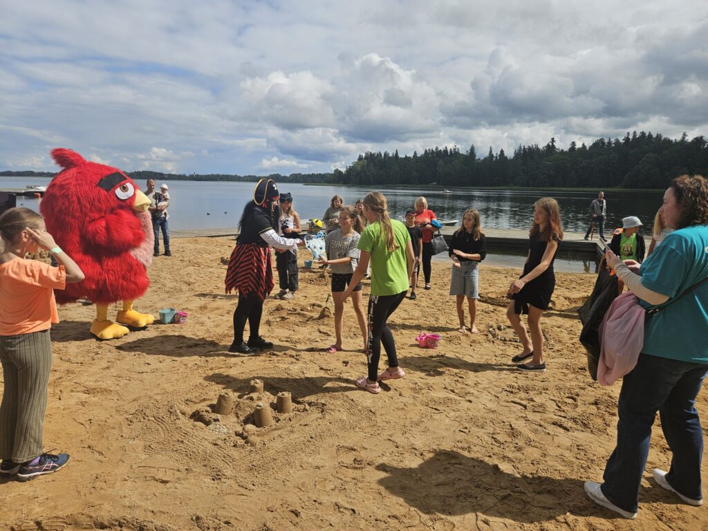 Alūksnes ezera krastā top pilsētiņa no bērnu veidotām smilšu pilīm. Visi aktīvi iesaistās un parāda savas radošās celtniecības prasmes. Pasākumu jautrāku padara pirātu meitene un niknais putns – viņi arī uzrauga visus mazos būvniekus darba procesā.