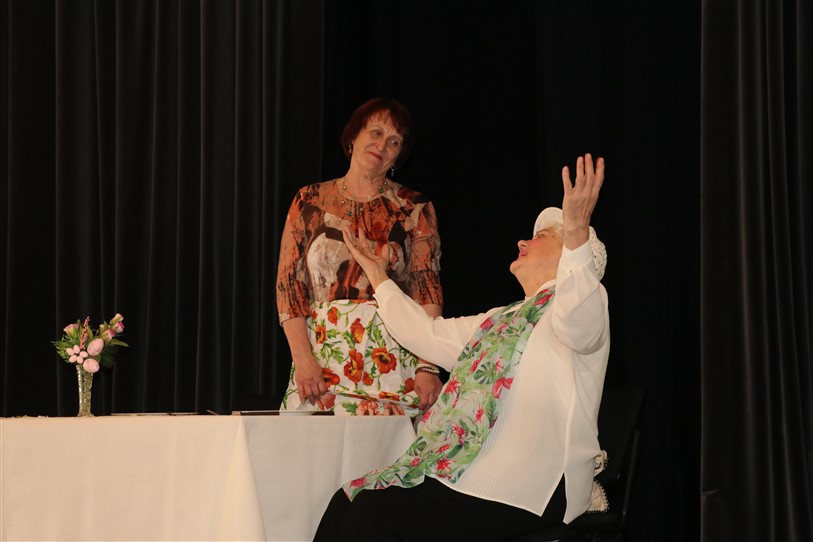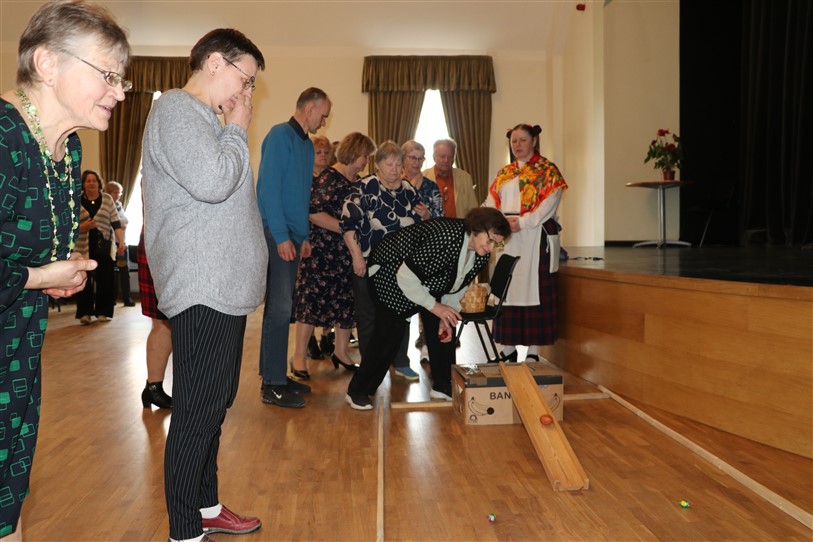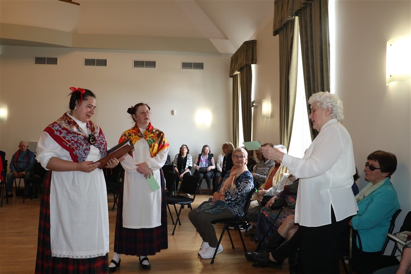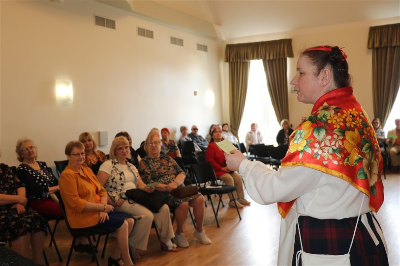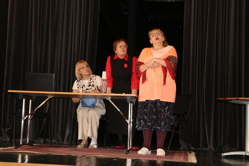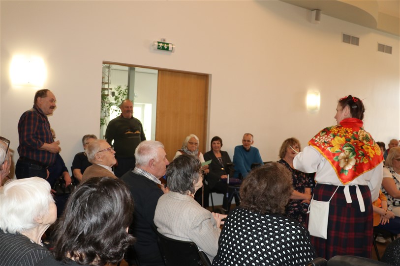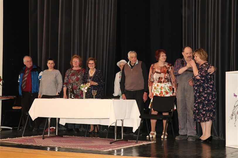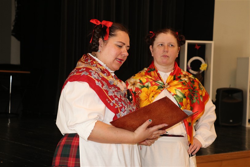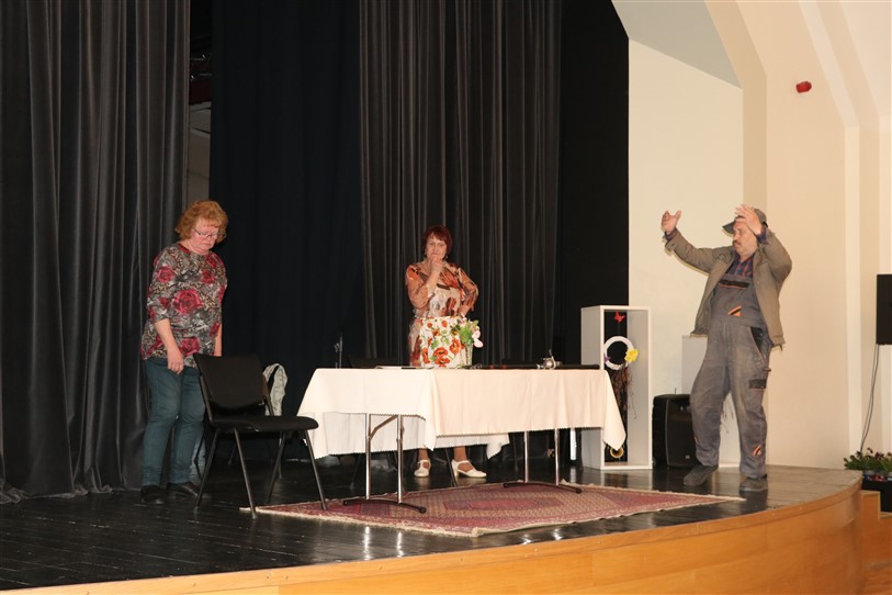 V. Sedleniece aicināja noskatīties biedrības teātra pulciņa iestudētos skečiņus “Auto maiņa”, “Par televīziju” un “Nopietni kā anekdotē”. Pēc tam svētku dalībnieki ieklausījās Trīnes un Zaplīzes Lieldienu ticējumos un ripināja krāsainās olas.