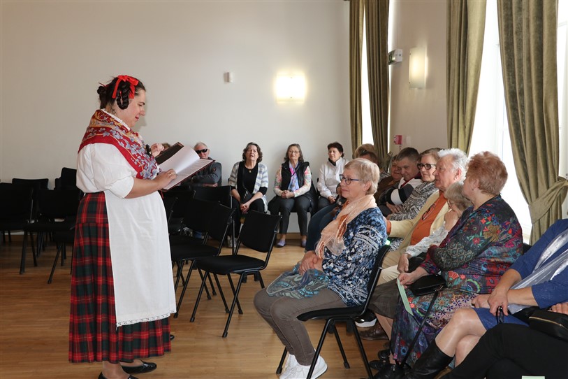 Sarīkojuma pirmajā daļā ar savu priekšnesumu – trīs nelieliem humoristiskiem skečiem – priecēja biedrības teātra pulciņš, režisore Vera Sedleniece. Bet otrajā daļā klātesošos izklaidēja Jaunlaicenes muižas muzeja “Malēņieša pasaule” meitiski – Zaplīze un Trīne.