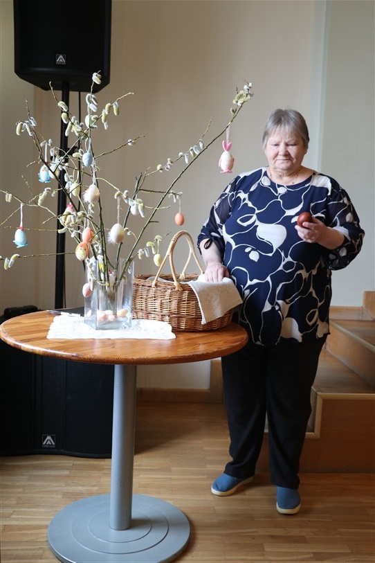 Biedrības valdes priekšsēdētāja Solvita Rateniece visiem vēlēja saulainas Lieldienas, izšūpoties, lai odi vasarā nekož, un uzvarēt olu kaujās. Viņa pastāstīja arī par nākamajām tuvākajām aktivitātēm biedrībā. “26. aprīlī visus, kuri to vēlas un spēj, aicinu piedalīties Lielajā talkā. Kā jau ierasts, sakopsim Mācītājmājas apkārtni. Jūnijā visi kopā atkal svinēsim Jāņus. Vasarā plānota arī divu dienu ekskursija uz Igauniju – aicinu interesentus biedrībā tai pieteikties. Orientējošā maksa par ekskursiju 130 līdz 140 eiro,” informēja S. Rateniece. Viņa uzsvēra, ka biedrība arī ikdienā darbojas ļoti aktīvi, tādēļ lūdza pievienoties grupai, kas spēlē galda spēles, teātra pulciņam un iesaistīties citās radošajās nodarbībās. Tāpat S. Rateniecei ir arī ideja izveidot nūjotāju grupiņu veselības uzlabošanai un interesentus pieteikties biedrībā.