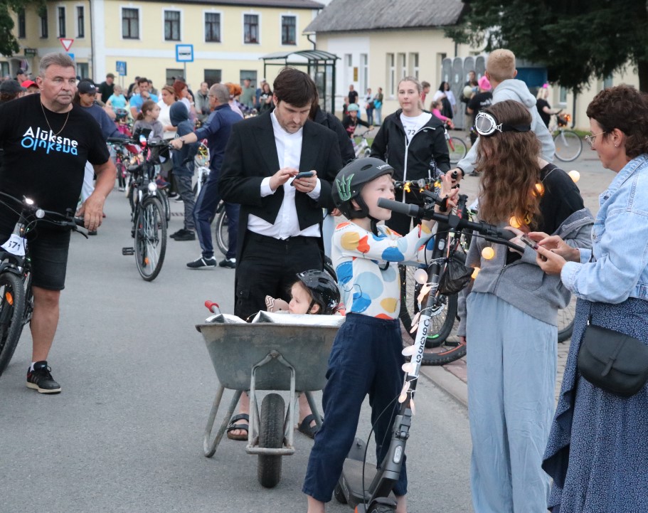 Šogad organizatori aicināja parādes braucienā nepiedalīties pašus mazākos ar līdzsvara velosipēdiem, domājot par drošību. Tāpēc pirms lielā brauciena tie, kuri nevar pārvietoties pa ceļa braucamo daļu un piedalīties satiksmē, devās mazajā veloparādē pie administratīvās ēkas.