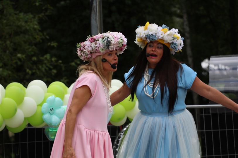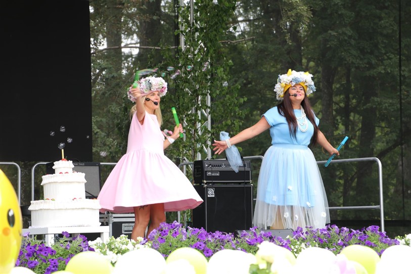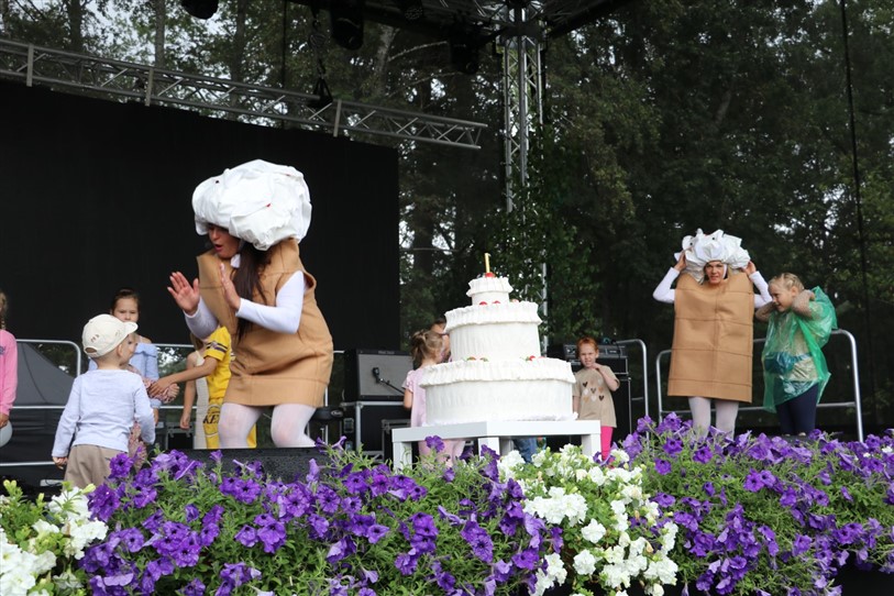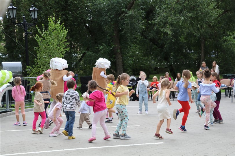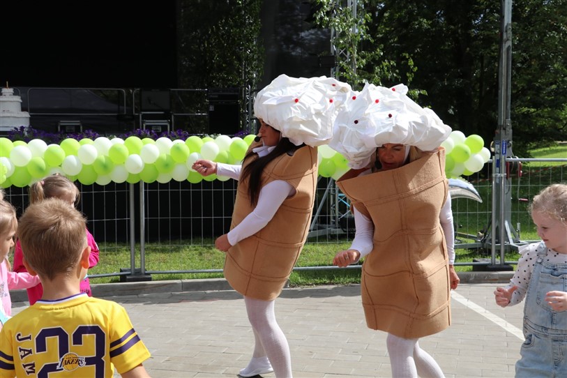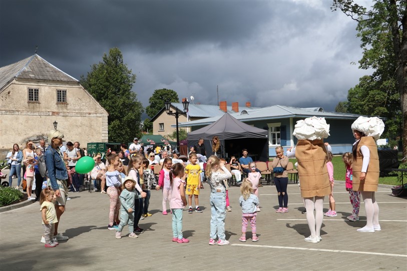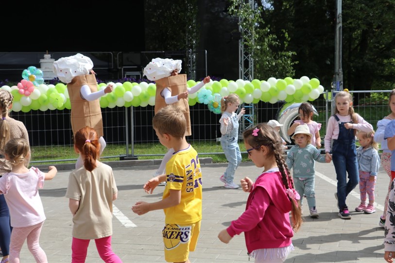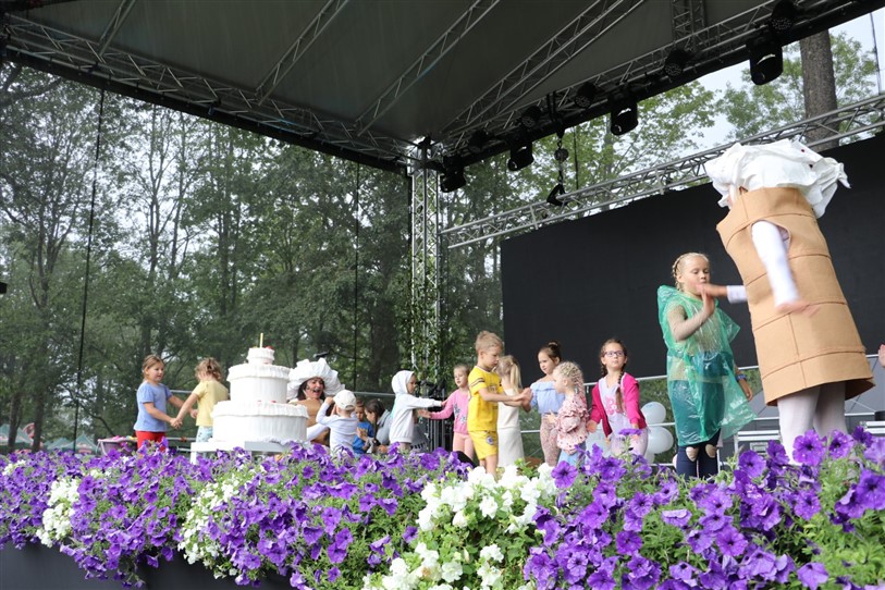 Kad apsveikumi saņemti, pie Alūksnes Tūrisma informācijas centra norisinājās jautra rotaļu programma bērniem “Diena kūst kā saldējums” kopā ar Santu Sāri un Zani Teteri. Dažādas izklaides iespējas bērniem šodien pieejamas arī Pilssalā un Pilssalas ielā pa ceļam uz to – piepūšamās atrakcijas, rotaļas, smilšu kūku konkurss u.c.