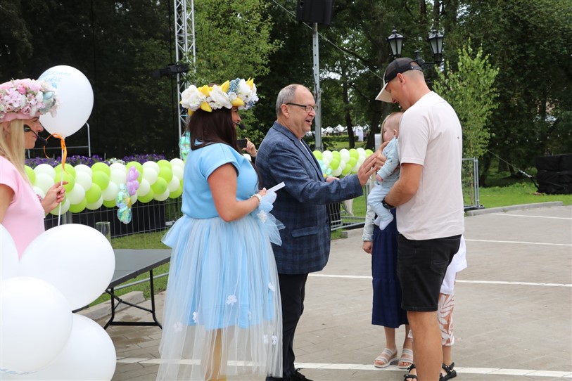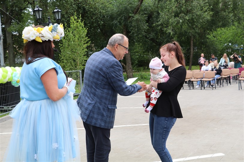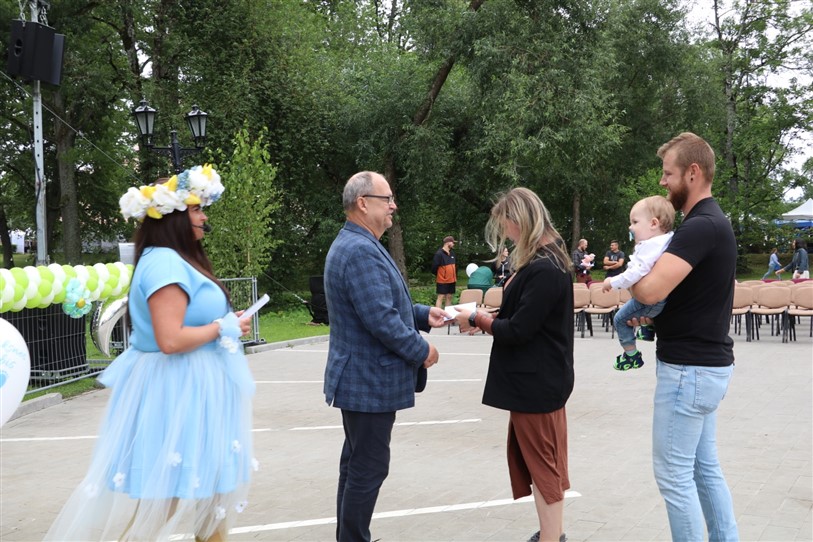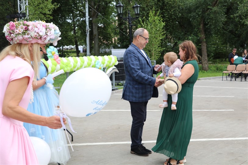 Alūksnes pilsētas svētkos pašvaldība tradicionāli sumina novada jaundzimušos. Šodien svinīgā pasākumā “Puķu bērni gaismas ceļos” pie Alūksnes Tūrisma informācijas centra Alūksnes novada pašvaldības domes priekšsēdētāja vietnieks Aivars Fomins un Alūksnes novada Dzimtsarakstu nodaļas vadītāja Inga Ozoliņa sveica Alūksnes novada teritorijā deklarētos mazuļus, kuri piedzimuši kopš pagājušā gada Alūksnes pilsētas svētkiem un kuru deklarētā dzīvesvieta ir kādā no novada pagastiem vai pilsētā. Pasākuma pašvaldība iepriekš aicināja pieteikties.
