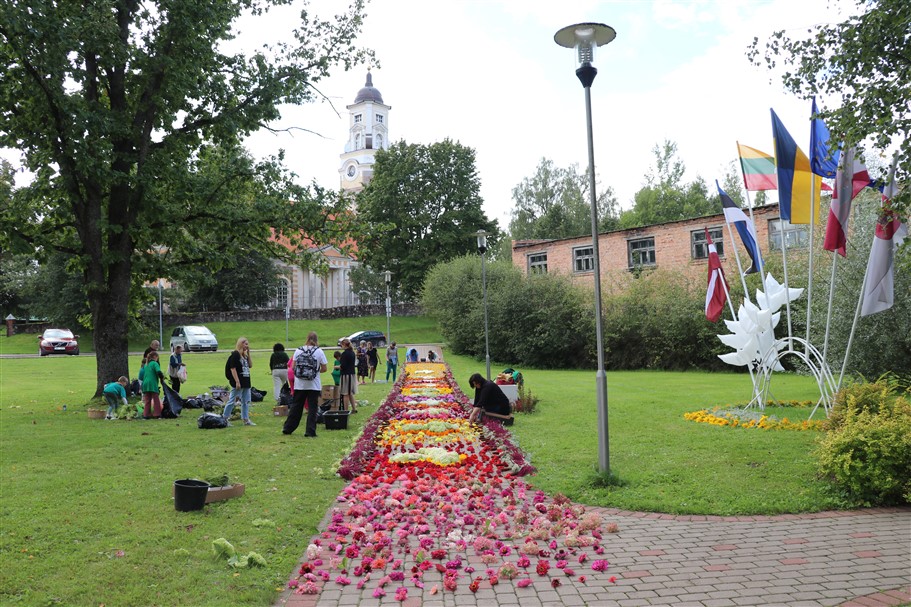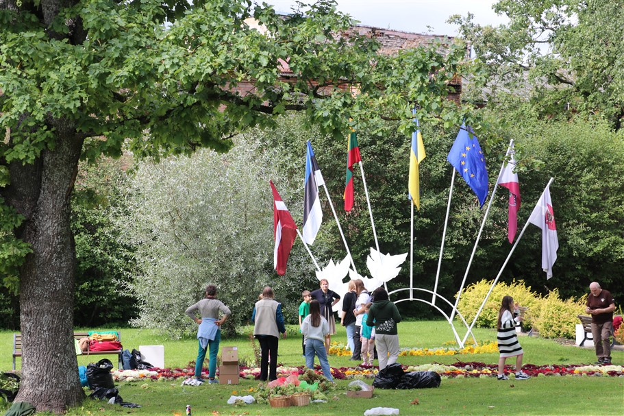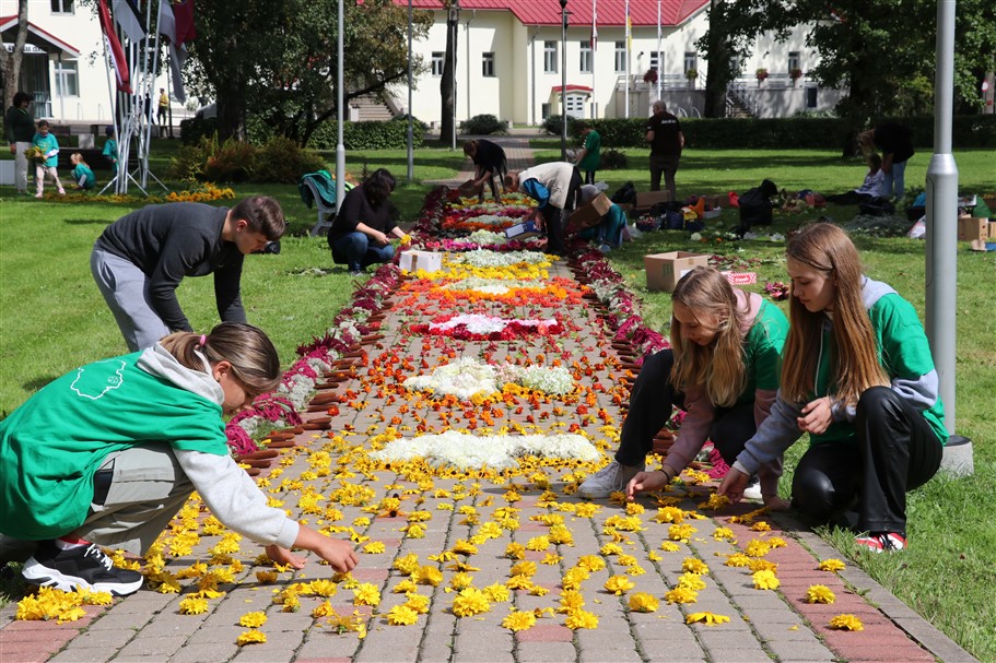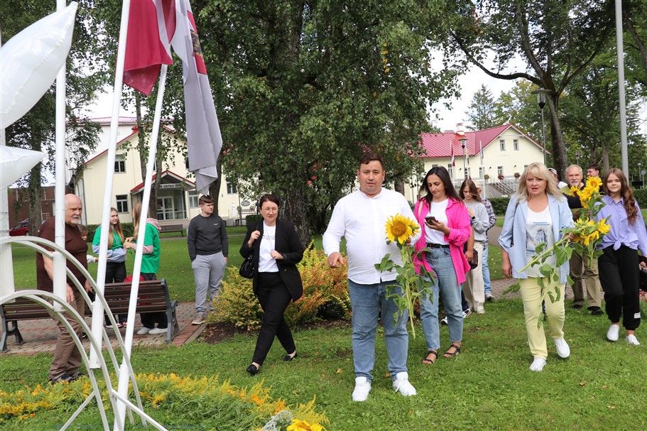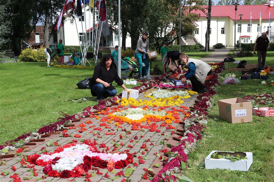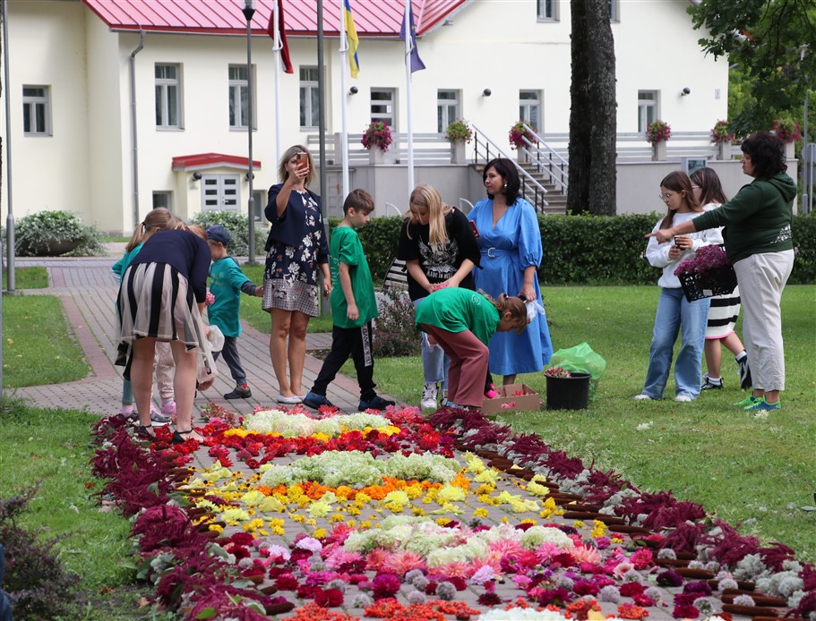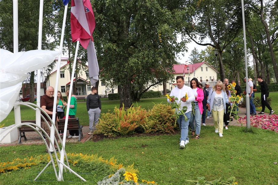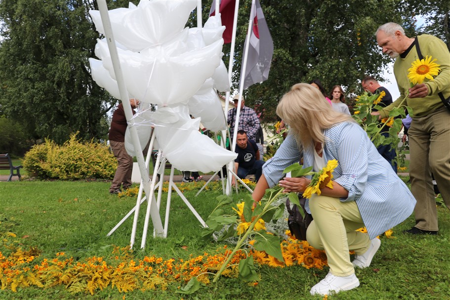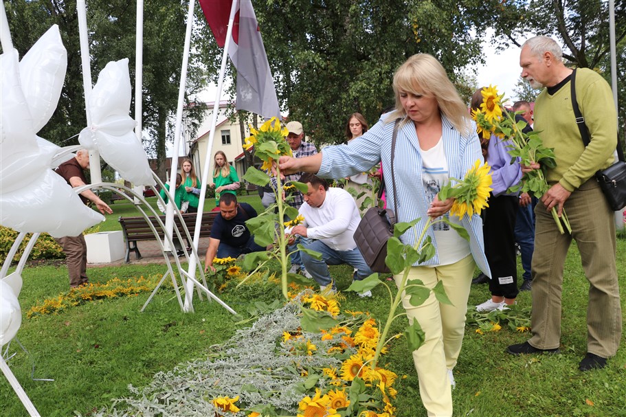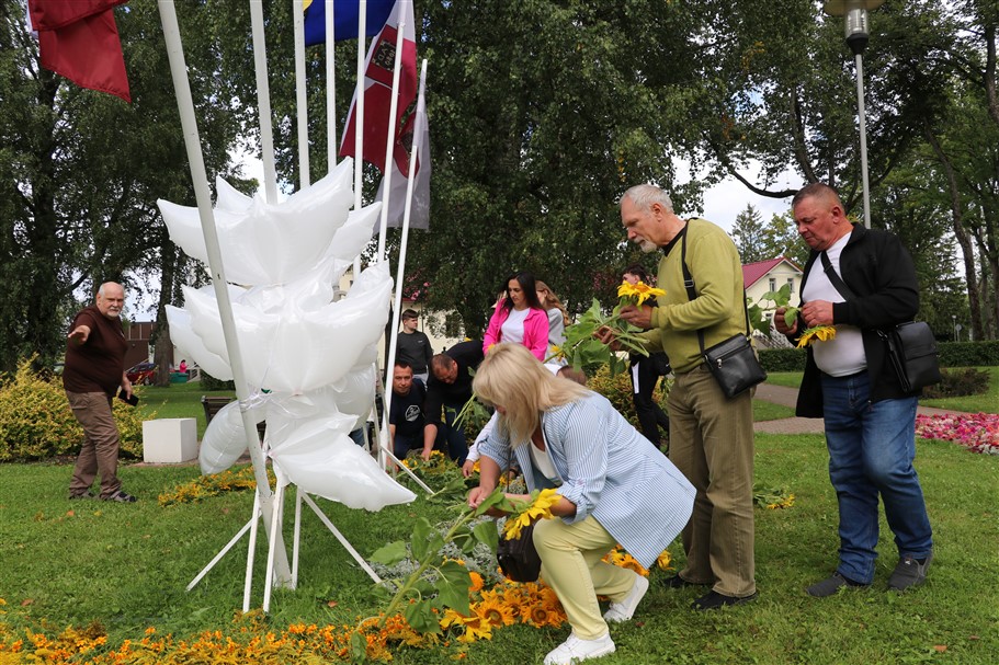 Šodien Alūksnes Kultūras centrā un tā skvērā notiek īpaši pasākumi, lai atzīmētu Baltijas ceļa 35. gadadienu un Ukrainas neatkarības dienu. Pasākumi sākās ar ziedu paklāja veidošanu “Miera ceļš”, kur darbojās novada mazpulcēni un citi palīgi. Ziedus bija sanesuši arī iedzīvotāji.