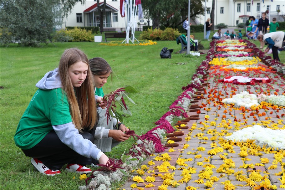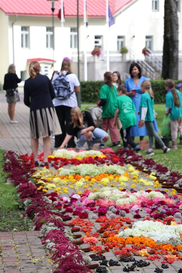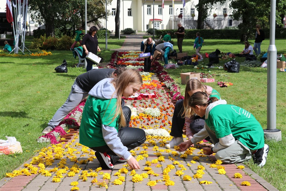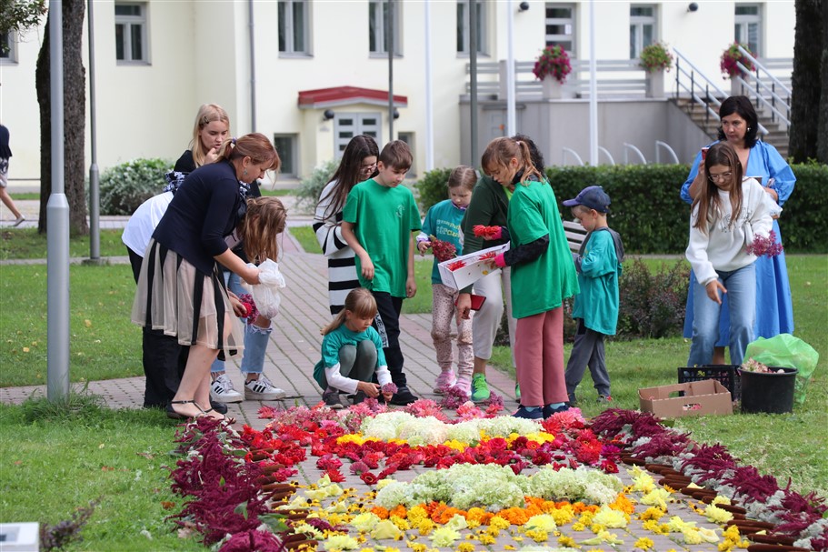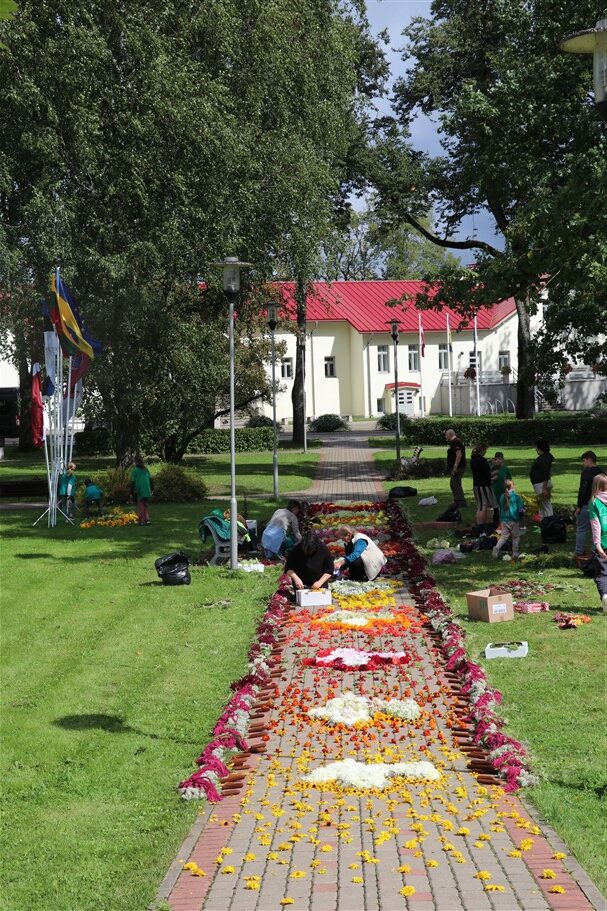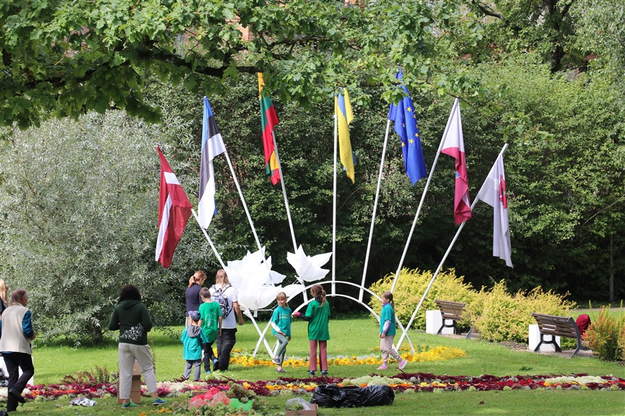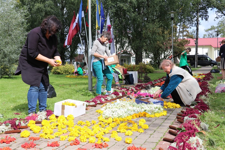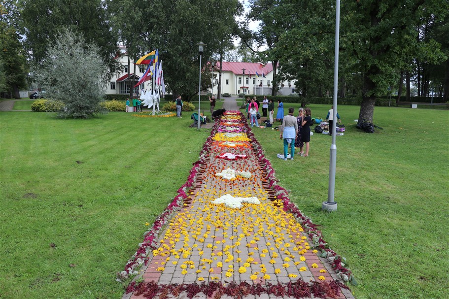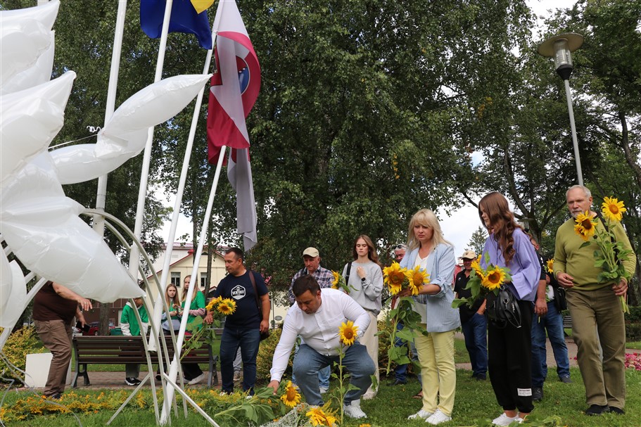 Šodien Alūksnes Kultūras centrā un tā skvērā notiek īpaši pasākumi, lai atzīmētu Baltijas ceļa 35. gadadienu un Ukrainas neatkarības dienu. Pasākumi sākās ar ziedu paklāja veidošanu “Miera ceļš”, kur darbojās novada mazpulcēni un citi palīgi. Ziedus bija sanesuši arī iedzīvotāji.