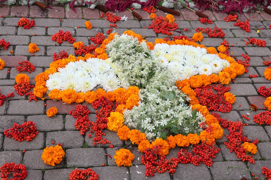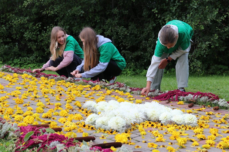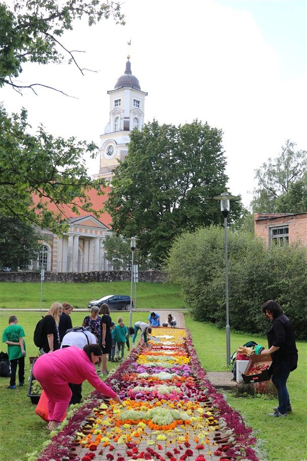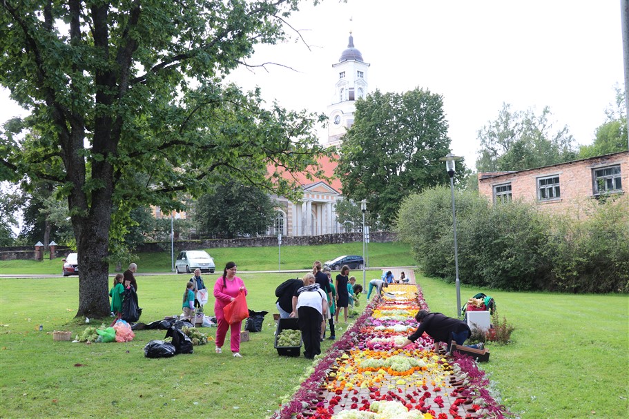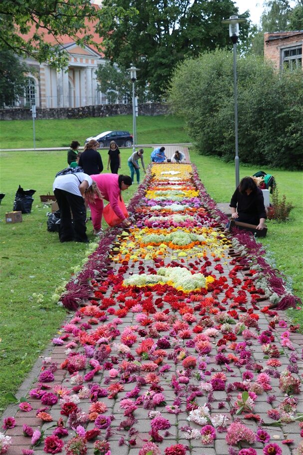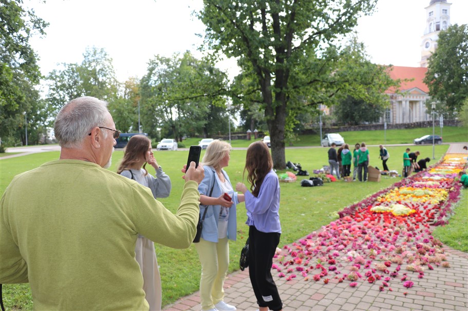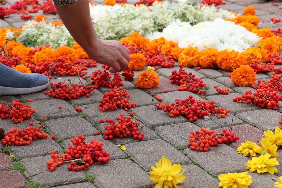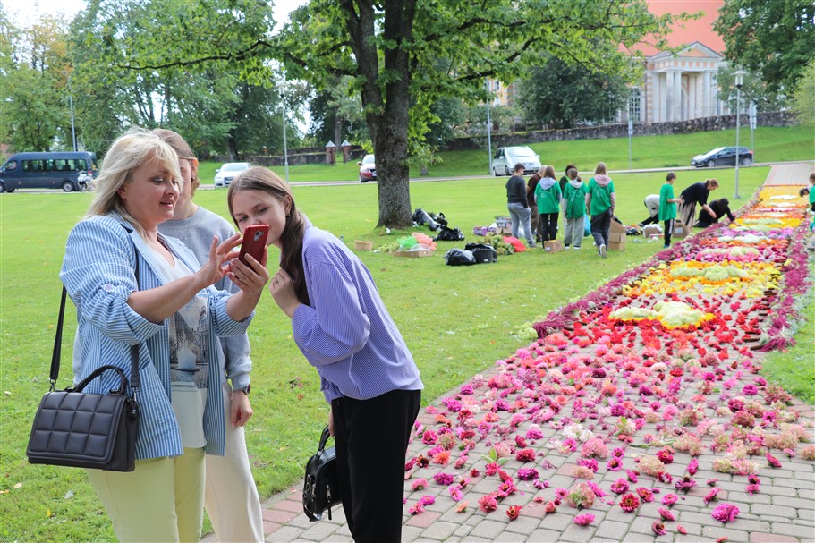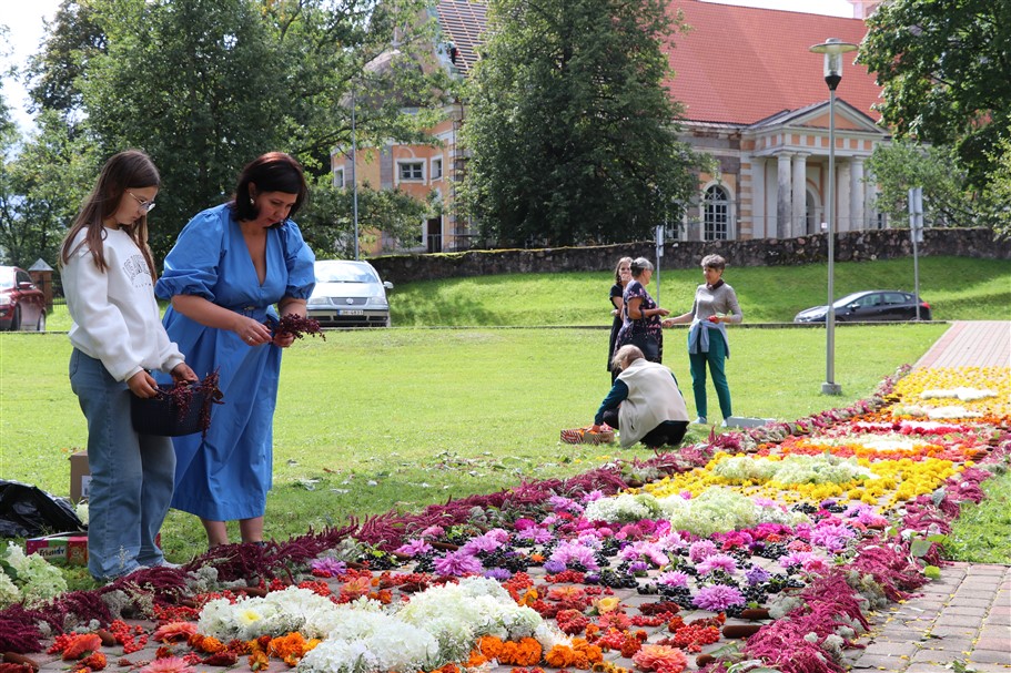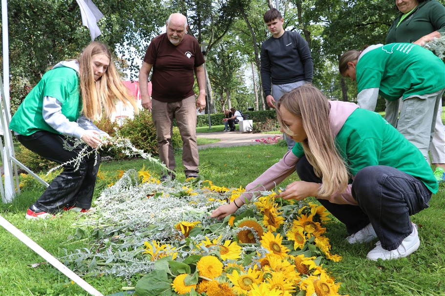 Šodien Alūksnes Kultūras centrā un tā skvērā notiek īpaši pasākumi, lai atzīmētu Baltijas ceļa 35. gadadienu un Ukrainas neatkarības dienu. Pasākumi sākās ar ziedu paklāja veidošanu “Miera ceļš”, kur darbojās novada mazpulcēni un citi palīgi. Ziedus bija sanesuši arī iedzīvotāji.