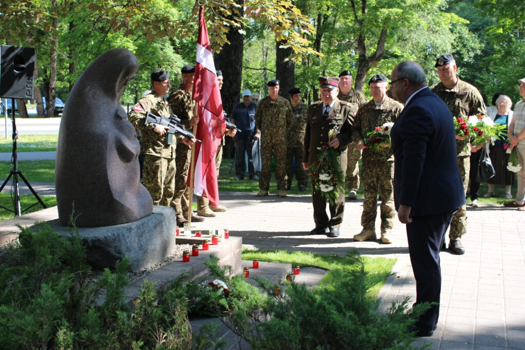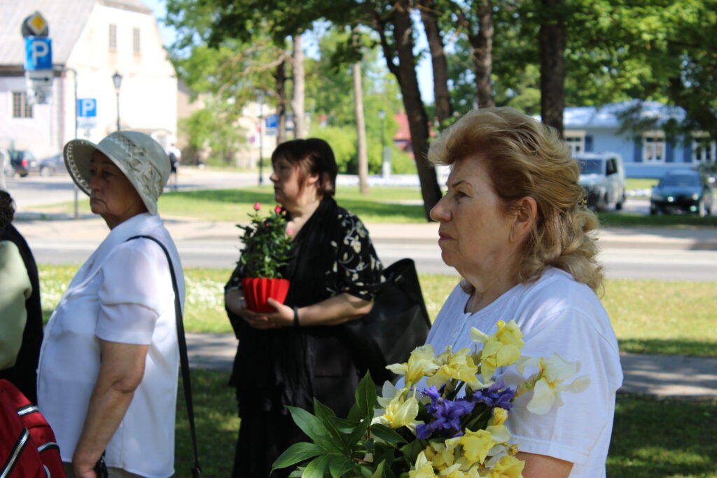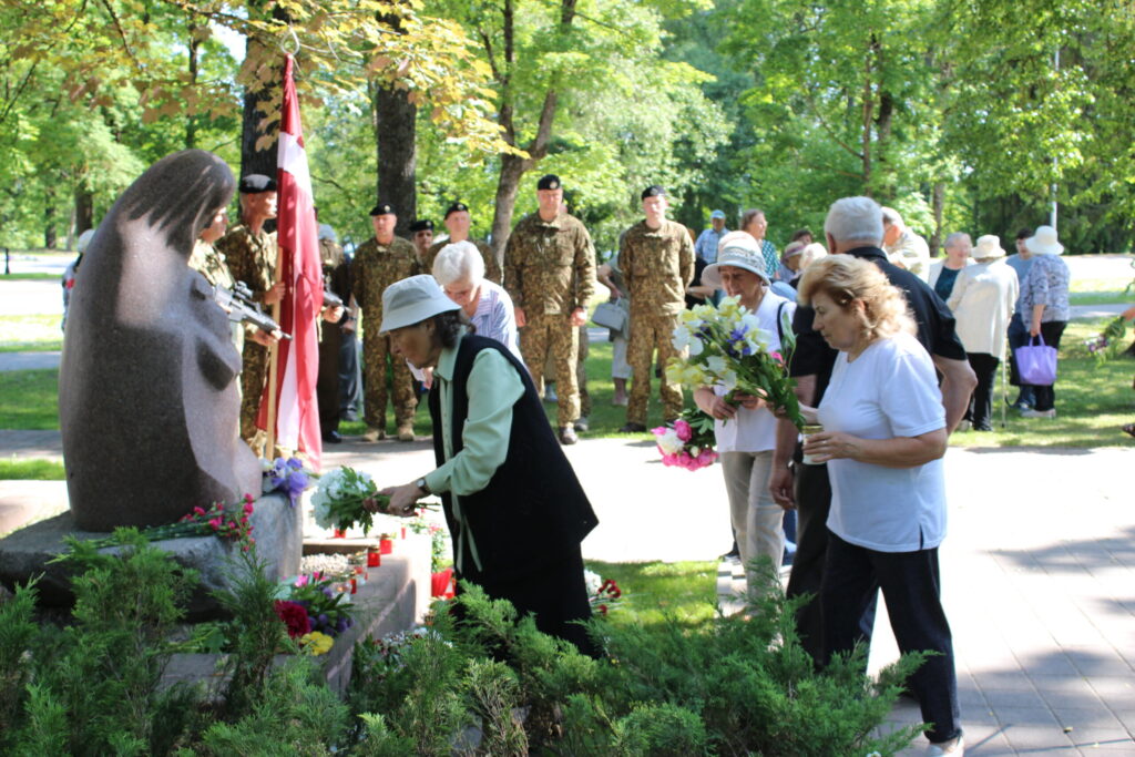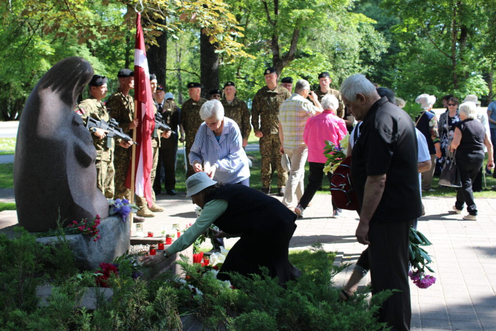 Sanākušie nolika ziedus gan pie Mātes tēla, gan piemiņas vietā “Tiem, kuri neatgriezās” Alūksnes