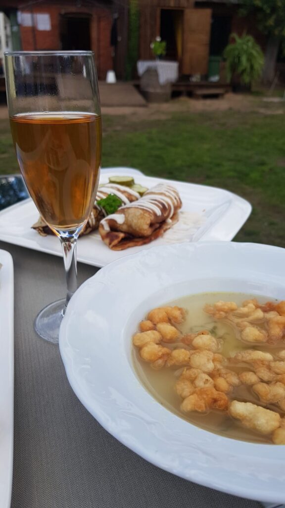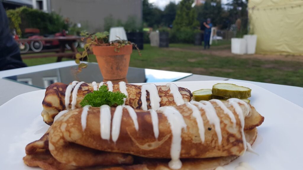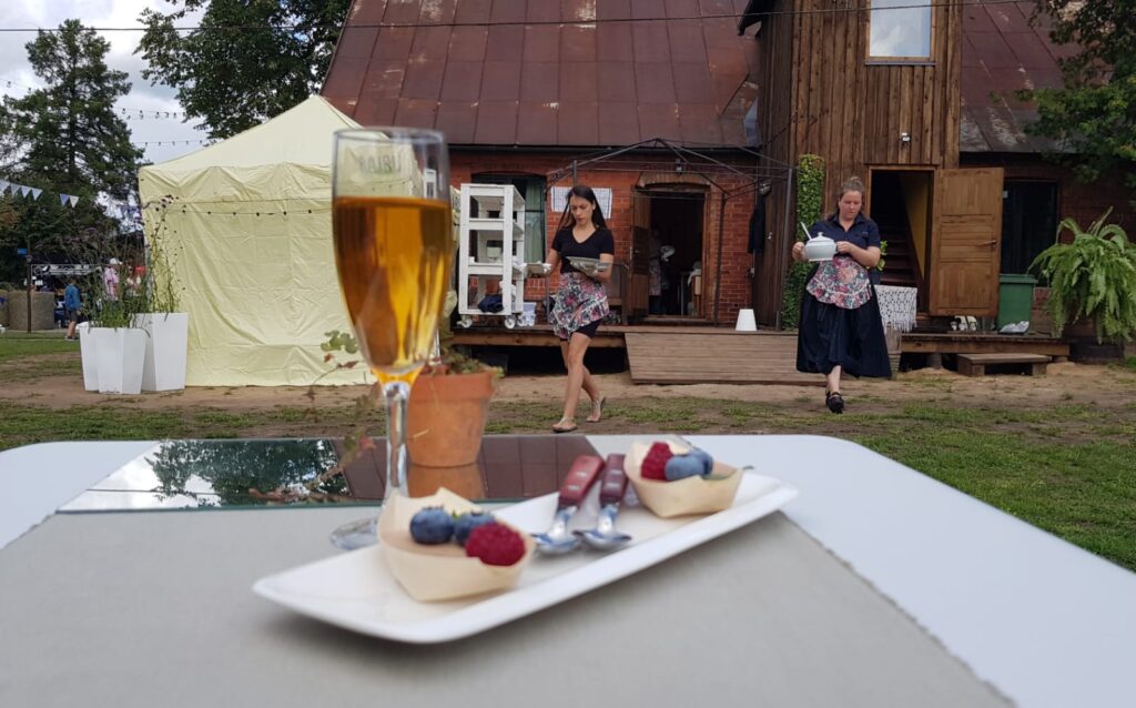 Apes pilsētas svētkos norit arī Mājas kafejnīcu diena, kad trīs viesmīlīgas Apes sētas vērušas savus pagalmus mājas garšu baudītājiem. Attēlos: maltīte pie Harju ģimenes mājas kafejnīcā “Esential”.