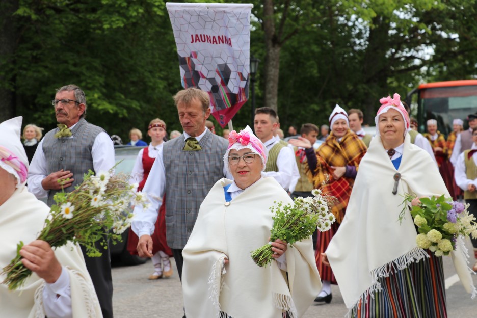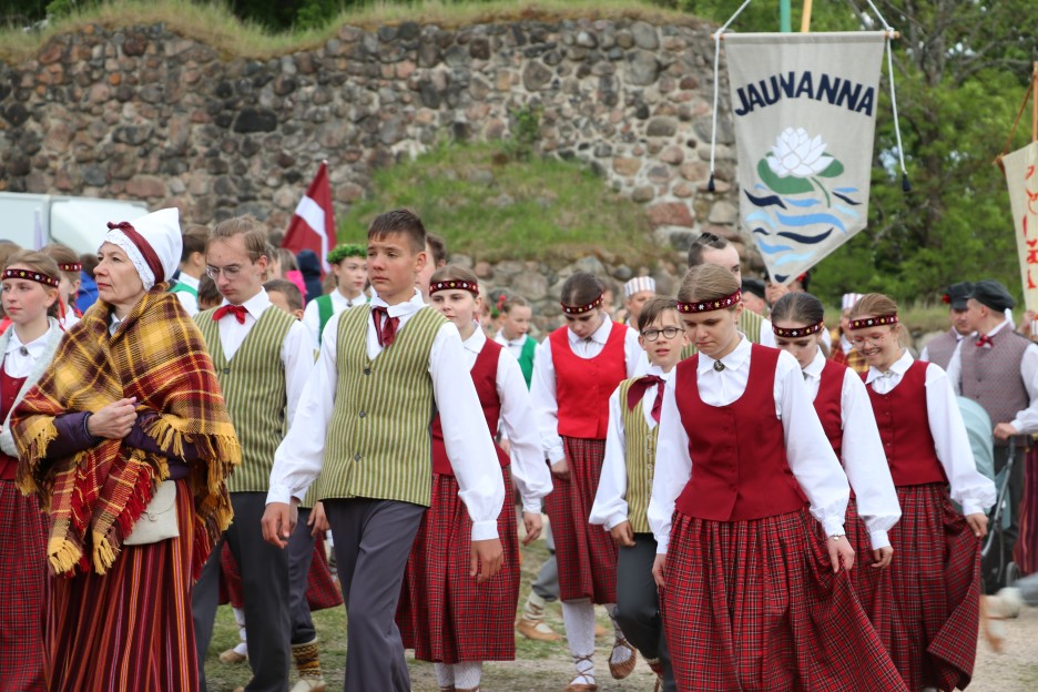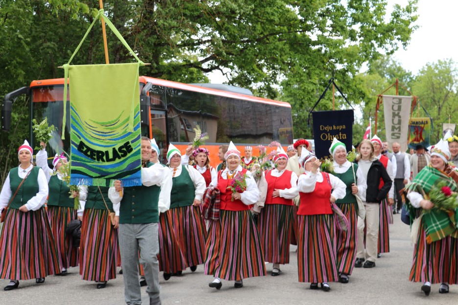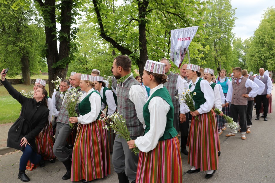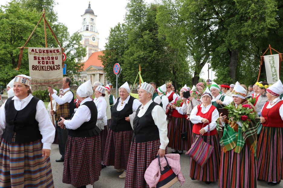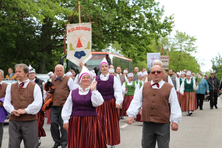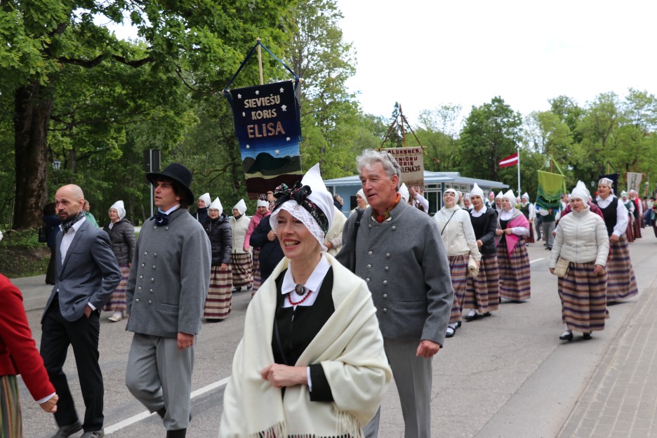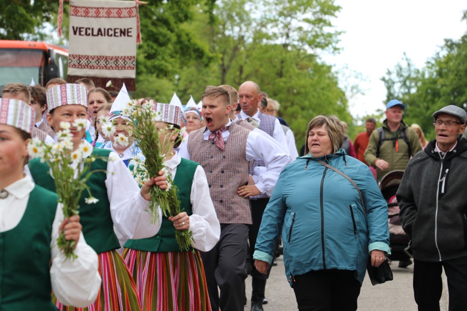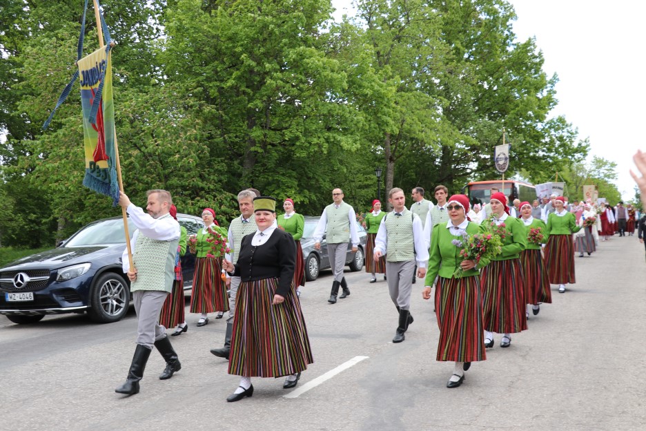 Pēc koru un ansambļu koncerta kolektīvi devās gājienā uz Pilssalas estrādi. Tas aizvijās no Brūža ielas pa