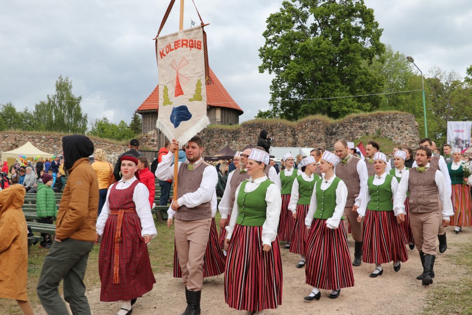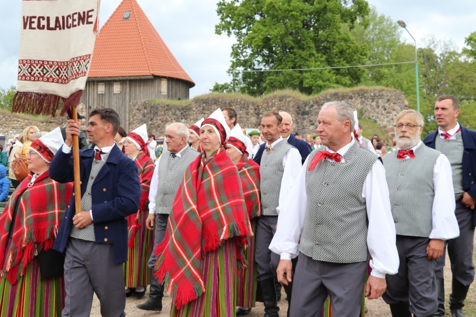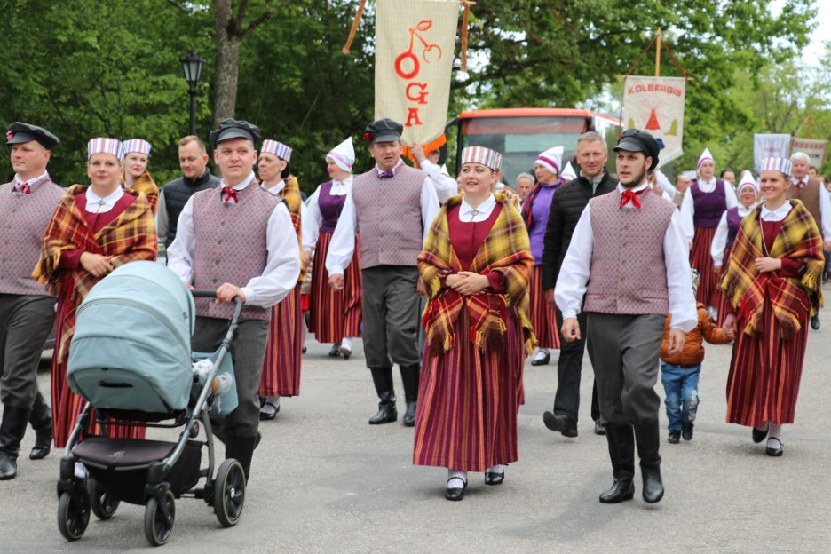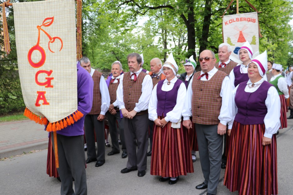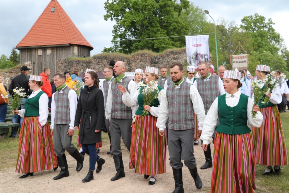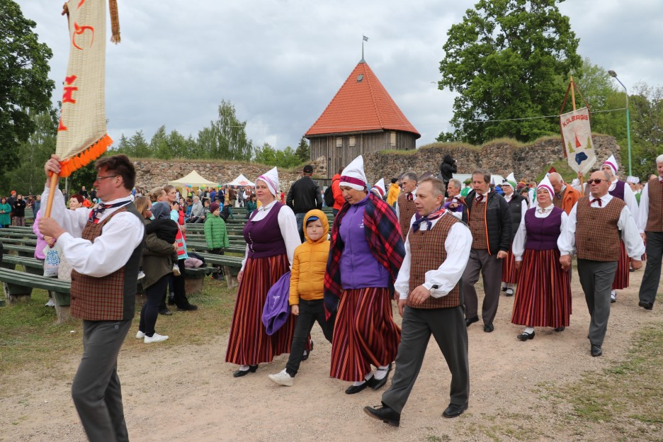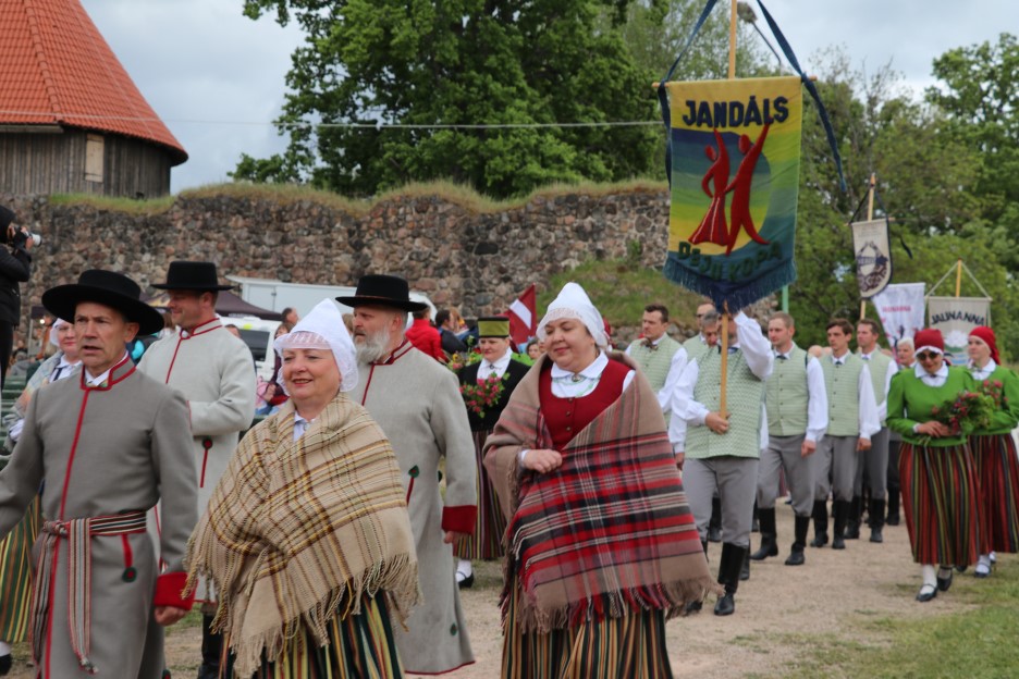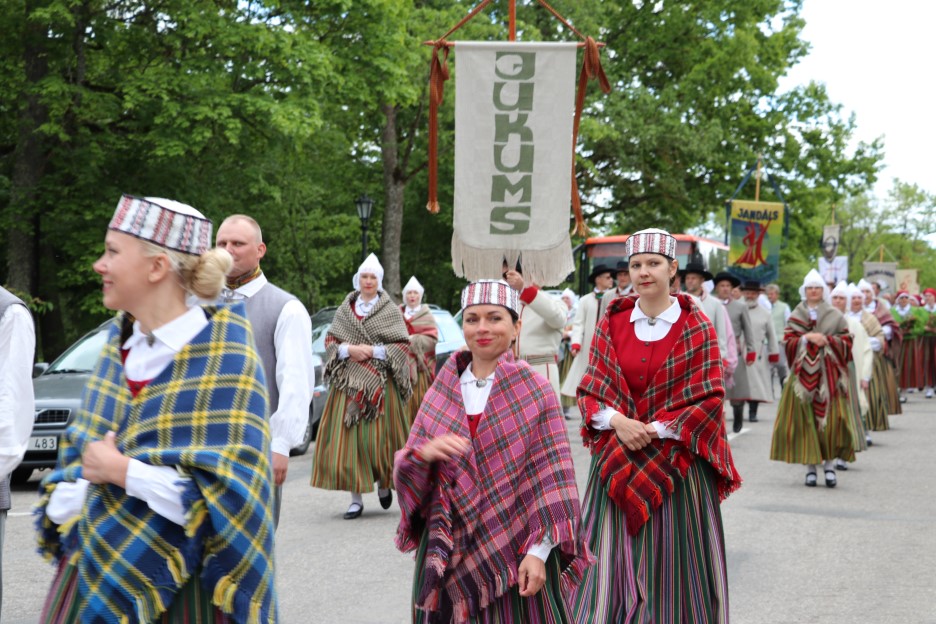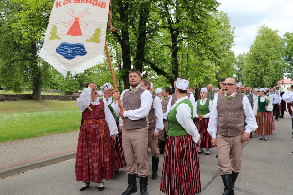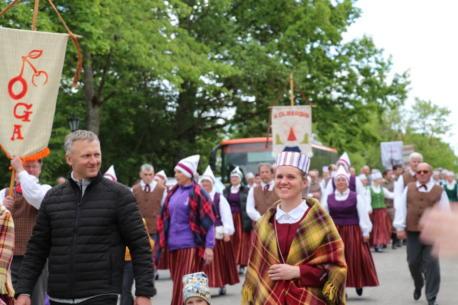 Pēc koru un ansambļu koncerta kolektīvi devās gājienā uz Pilssalas estrādi. Tas aizvijās no Brūža ielas pa