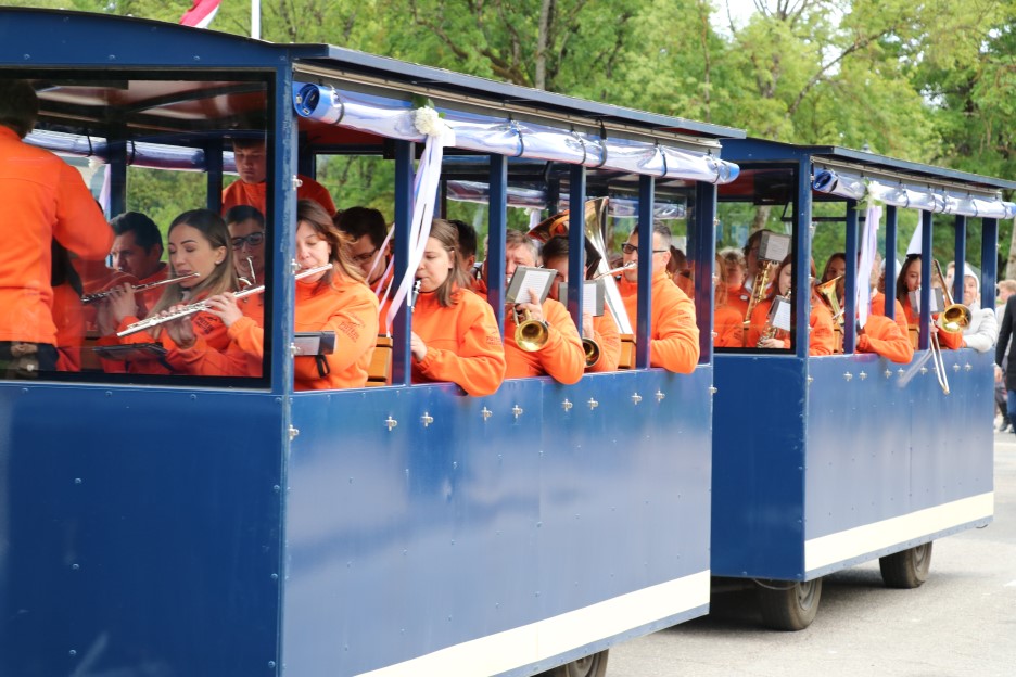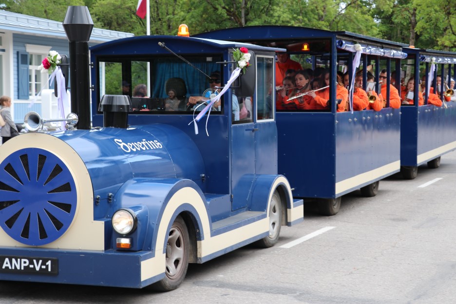 Pils ielu, Ojāra Vācieša ielu, Pilssalas ielu uz estrādi. Gājiena priekšgalā vilcieniņš “Severīns” veda Ernsta