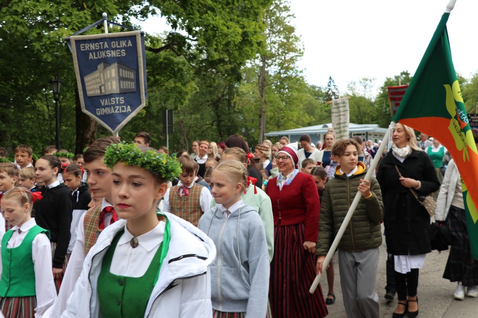 Glika Alūksnes Valsts ģimnāzijas pūtēju orķestri. Tam sekoja kori, deju kolektīvi, gan lieli, gan mazi