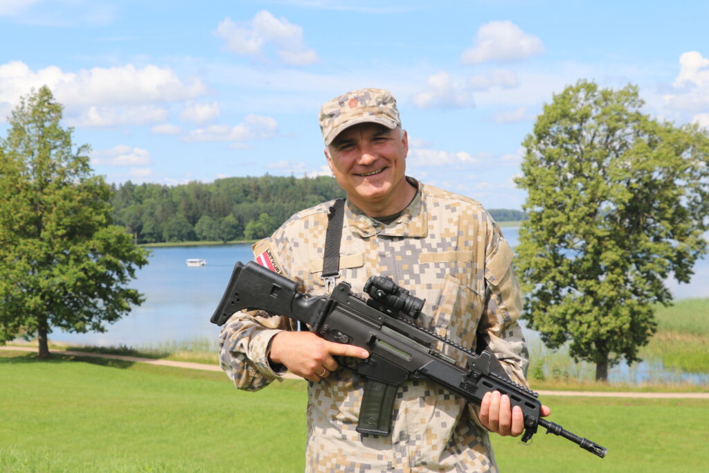 “Kopš 1996. gada dzīvoju un strādāju Rīgā, un Alūksnē esmu arvien retāk, jo arī vecāku te vairs nav, pie kā ciemoties, atlicis vien meža īpašums. Tādēļ rezervista dienests Alūksnes apkārtnē līdztekus karavīra piedzīvotajam man bija arī ļoti nostalģisks laiks. Bija interesanti ar laika distanci atgriezties Strautiņu bāzē, kur 1994. gadā, strādājot Švolmaņa būvniecības uzņēmumā, atjaunojām. Kad pieveda mūs pie bāzes žoga, biju pārsteigts un aizkustināts – atgriešanās pēc trīsdesmit gadiem! Man ir neliela militārā pieredze, pusotru gadu deviņdesmito gadu sākumā dienot Robežsargu mācību centrā Vārvē, kur dienēja ap pustūkstotis instruktoru un kursantu. Biju instruktors, demobilizējos 1994. gadā. Taču trīsdesmit gadu laikā iemaņas ir zudušas, mainījušies ieroči, tehnoloģijas attīstījušās, tādēļ šī vienalga bija pilnīgi jauna pieredze, ja neskaita to, ka biju pazīstams ar ierindas mācību, militāro rutīnu, disciplīnu, tādām lietām. Taču mana ikdienas nodarbošanās nav saistīta ar militārajām jomām, darbojos elektroinstrumentu interneta veikalā, kas ir salīdzinoši ilggadējs uzņēmums, ko kopā ar draugu dibinājām divtūkstošo gadu sākumā. Sākoties karam Ukrainā, kas valsts aizsardzību nolika pirmajā vietā, sāku aizdomāties, ka būtu jāatsvaidzina militārās iemaņas, jo sapratu – tādam, kāds es biju pirms šīm trim nedēļām, X stundā armijā nav ko darīt. Gribēju būt noderīgs, ja tāda vajadzība būs. Galējo lēmumu pieņēmu kādā vakarā, kopā ar draugu malkojot aliņu, sapratu, ka varu šim nolūkam pakārtot atvaļinājumu, un pieteicos. Tāpat man ir cerība ar savu piemēru rādīt priekšzīmi maniem 22 un 17 gadus vecajiem dēliem. Viņi par šo pagaidām nedomā, bet varbūt tagad radīsies interese un motivācija.