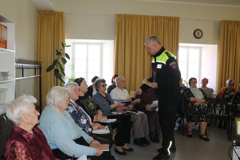 Sapulces otrajā daļā seniori tikās un uzklausīja Pašvaldības policijas priekšnieka A. Tomsona un civilās aizsardzības speciālistes M. Sliņķes stāstījumu par civilās aizsardzības iespējām Alūksnes novadā. Civilā aizsardzība ir pasākumu kopums, kurus īsteno valsts un pašvaldību institūcijas un sabiedrība, lai nodrošinātu cilvēku, vides un īpašuma drošību, kā arī īstenotu atbilstošu rīcību katastrofas un katastrofas draudu gadījumā. M. Sliņķe pastāstīja, ka novadā izstrādāts un pašlaik tiek pilnveidots civilās aizsardzības plāns. “Plānam pievienota arī sadaļa ar informāciju par to, kā rīkoties militāra iebrukuma gadījumā. Ar civilās aizsardzības plānu sīkāk iespējams iepazīties novada pašvaldības mājas lapā, bet militārā sadaļa satur ierobežotu informāciju un ar to nevar iepazīties ikviens, kurš to vēlas. Tas nozīmē – pirms laika nenodosim svarīgu informāciju ienaidniekam,” sacīja M. Sliņķe. Plāna sadaļa satur informāciju par to, kā novadā plānots organizēt iedzīvotāju informēšanu, evakuēšanu, pirmās nepieciešamības preču nodrošināšanu, kas ir svarīga informācija militāra iebrukuma gadījumā. M. Sliņķe pastāstīja, kas jāliek tā sauktajā 72 stundu somā, kur tā jāglabā, kā jārīkojas, ja izdzirdam informāciju par krīzes situācijas iestāšanos. Viņa uzsvēra, ka ikvienam savā viedtālrunī būtu noderīgi instalēt aplikāciju “112”, kur varēs saņemt visu informāciju krīzes situācijā, kā arī tā parādīs tālruņa īpašnieka konkrētu atrašanās vietu. “Ja viedtālruņa nav, lietojam tā sauktos podziņtelefonus vai neatrodamies apraides zonā, nav interneta, plānots, ka arī tad būs iespēja saņemt informāciju, jo jau līdz šī gada jūlijam valsts plāno ieviest šūnu apraidi,” atklāj M. Sliņķe.