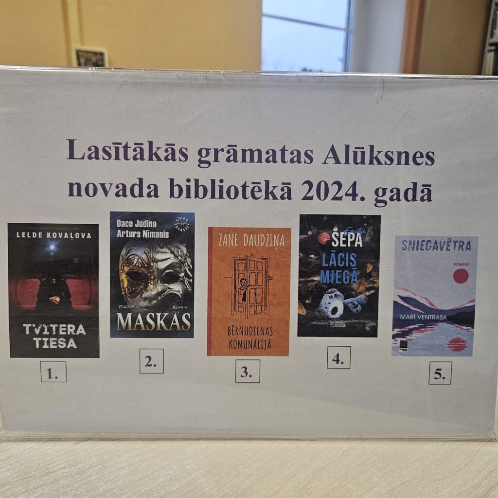 2024. gadā Alūksnes novada bibliotēkā nonāca 728 jaunas grāmatas. “Visvairāk iedzīvotāji izvēlas lasīt daiļliteratūru – no iepirktajām grāmatām 400 bija tieši šis žanrs. Daudzus interesē detektīvi, dāmu romāni, grāmatas par ceļojumiem, vēsturi. Gaumes ir dažādas. Pēdējā laikā ļoti pieprasītas ir grāmatas par personībām, piemēram, Greisu Kelliju, Mišelu Obamu, Arnoldu Švarcenegeru, Andreju un Juri Žagariem, Edgaru Liepiņu un daudz citu,” informē S. Avotiņa un piebilst, ka cilvēkiem patīk lasīt par spēcīgām personībām, tas viņus iedvesmo.