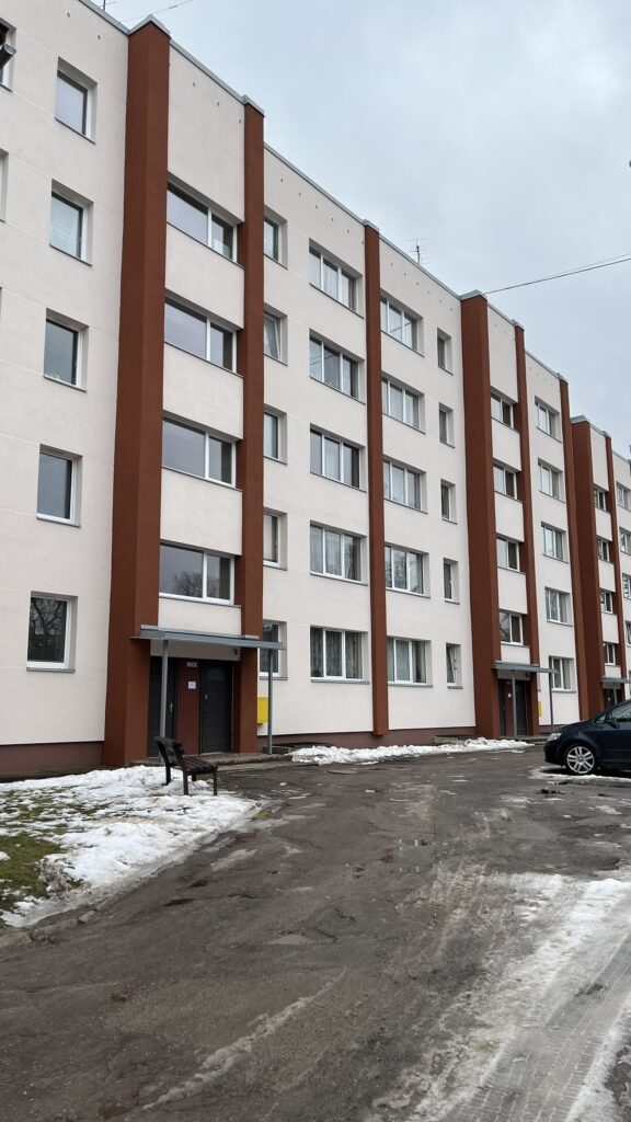 1974. gadā celtā māja ir pietiekami labā stāvoklī, un tas lielā mērā ir pateicoties tam, ka paši iedzīvotāji par to rūpējušies. “Pirmo kredītu 30 000 latu apmērā mājai paņēmām 2006. gadā, lai nomainītu logus koplietošanas telpās, durvis un sakārtotu – remontētu jumtu, veiktu kosmētisko remontu mājas koplietošanas telpās. 2023. gadā māju renovēja, uz ko gājām piecus gadus, divreiz veicām energoauditu, tas ir ēkas tehniskās apsekošanas atzinums, kas sniedz iespēju saņemt informāciju par siltuma zuduma vietām, ēkas siltināšanai veicamajiem pasākumiem -priekšlikumiem, kā arī energoefektivitātes rādītāju prognozi pēc siltināšanas pasākumu īstenošanas.