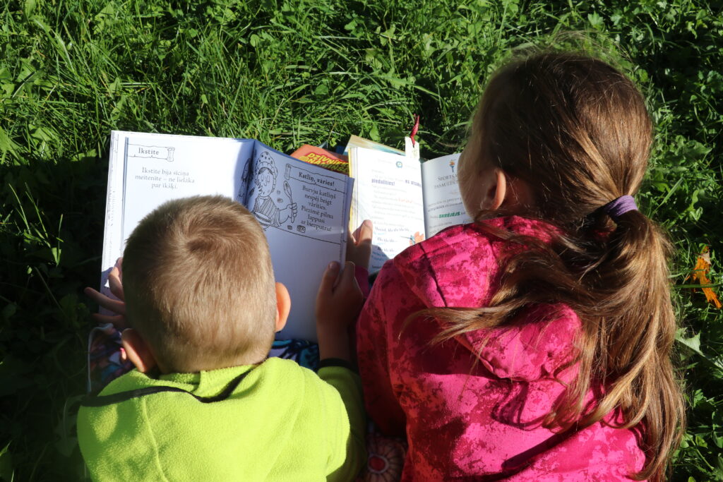 tā bērni savā starpā ir viens otram skolotāji, jo kāds grib “burtot”, cits klausās, viens otru palabo. “Bērniem patīk veidot savas grāmatas. Viņi uzraksta vārdus, kurus jau prot, savukārt garākus teikumus pēc viņu stāstītā palīdz pierakstīt pieaugušais,” piebilst pirmsskolas skolotāja.