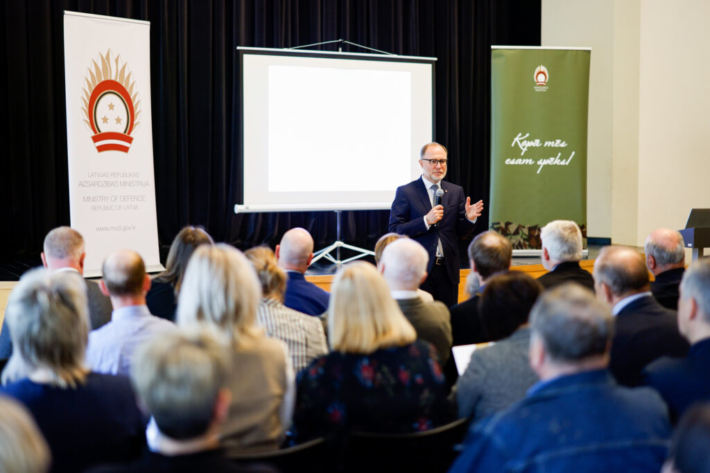 Seminārā piedalījās aizsardzības ministrs Andris Sprūds, kurš uzsvēra, ka Latvijas aizsardzība un neatkarības nosargāšana ir visas sabiedrības kopīga atbildība. “Valsts aizsardzības stratēģiskie darbības virzieni ir atturēšanas un aizsardzības spēju stiprināšana, kā arī noturības, rīcībspējas un gribas aizstāvēt valsti stiprināšana. Koncepcija norāda katra indivīda, kopienu, kā arī pašvaldību un valsts pārvaldes institūciju lomu valsts aizsardzībā, uzsverot nepieciešamību uzņemties pašiniciatīvu un pašorganizēties jeb attīstīt rīcības gatavības kultūru. Valsts aizsardzības koncepcija ir pamats Nacionālo bruņoto spēku attīstībai, kā arī valsts varas un pārvaldes institūciju, pašvaldību, fizisko un juridisko personu rīcībai miera, valsts apdraudējuma un kara laikā. Mēs varam būt lepni par to, ko esam sasnieguši, bet mums katram ir jāizdara savi mājasdarbi. Valsts aizsardzība un valsts drošība jābūvē pastāvīgi. Mēs esam pasargāti šodien, bet katra diena nes jaunus izaicinājumus, tādēļ ar katru dienu mums jābūt gatavākiem, stiprākiem, drošākiem, aizsargātākiem, tas ir darbs, kas nekad neapstāsies,” konferencē uzsvēra aizsardzības ministrs Andris Sprūds.