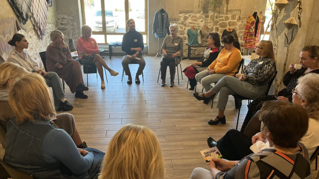 – sarunas ar iedzīvotājiem, kas notiek par Latvijas nākotnes attīstību līdz 2050. gadam. Sarunu mērķis ir iniciēt diskusijas par valsts un sabiedrības nākotni, stiprināt pilsoņu iesaisti lēmumu pieņemšanā, noskaidrot iedzīvotāju viedokļus un pieredzi, kā arī veicināt savstarpēju izpratni un cieņu starp dažādiem cilvēkiem un grupām, saglabājot cilvēcisko saikni un veidojot kopīgu redzējumu. “Dialoga apļu” metode, kas radusies Somijā, piedāvā drošu un neformālu vidi sarunām, kas vērstas uz uzticēšanās veidošanu un savstarpējās sapratnes veicināšanu. Dialogs ir saruna, kurā tiek mēģināts labāk izprast apspriežamo tematu, citus cilvēkus un savas domas. Dialoga nolūks nav pierunāt, argumentēt vai pārliecināt citus par sava viedokļa pareizību, bet radīt telpu dažādiem uzskatiem un veidot izpratni, balstoties citu teiktajā. Dialogā nav arī mērķa panākt vienprātību – cilvēki dialoga beigās var palikt pie savām domām, bet ir svarīgi, ka rezultātā ir augusi izpratne par citu cilvēku domām un savstarpēja sapratne.