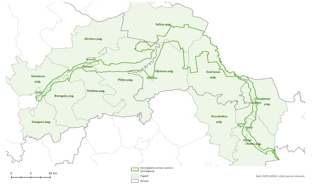 ■ Aizsargājamo ainavu apvidus atrodas Valmieras novada Brenguļu, Kauguru, Trikātas, Valmieras, Jērcēnu, Plāņu pagastos un Strenču pilsētā, Valkas novada Valkas, Vijciema un Zvārtavas pagastos, Smiltenes novada Gaujienas un Virešu pagastos.