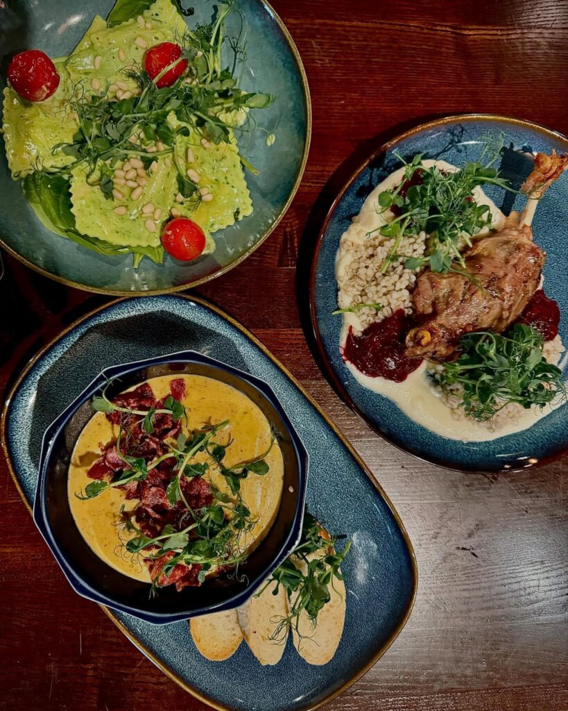 Rudens sezona iesākta ar jaunu ēdienkarti. “Protams, man kā pavārei gribas piedāvāt jaunus ēdienus, garšu salikumus, bet neesmu pārliecināta, vai klienti to vēlas. Lai nu kā, ēdienkartē joprojām ir karbonāde, jo bez tās nav iedomājama neviena ēdināšanas vieta Alūksnē. Jaunajā ēdienkartē ir vairākas zupas, ēdienkartē ir sēnes, pīle, store ar sakņu dārzeņiem, burkānkūka ar sāļo karameli, piparkūku siera kūka. Katrai sezonai ir raksturīgi savi ēdieni, otrs – produktu pieejamība. Plānoju ēdienkarti mainīt divas trīs reizes gadā. Alūksnē esam viena no retajām vietām, kur var paēst vegāns, ne tikai veģetārietis. Tas ir, pateicoties manai draudzenei Lāsmai,” saka A. Bērziņa.