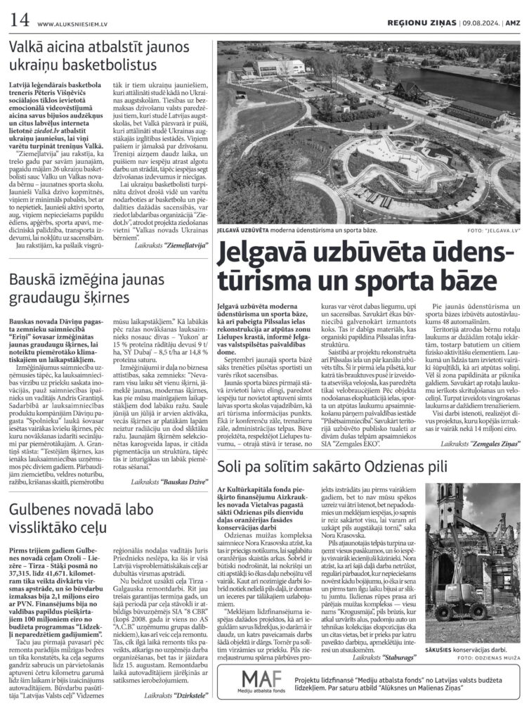 Mediju atbalsta fonda ieguldījums no Latvijas valsts budžeta līdzekļiem. Par “Reģionu ziņas: Jelgavā uzbūvēta ūdenstūrisma un sporta bāze” saturu atbild “Alūksnes un Malienas Ziņas”