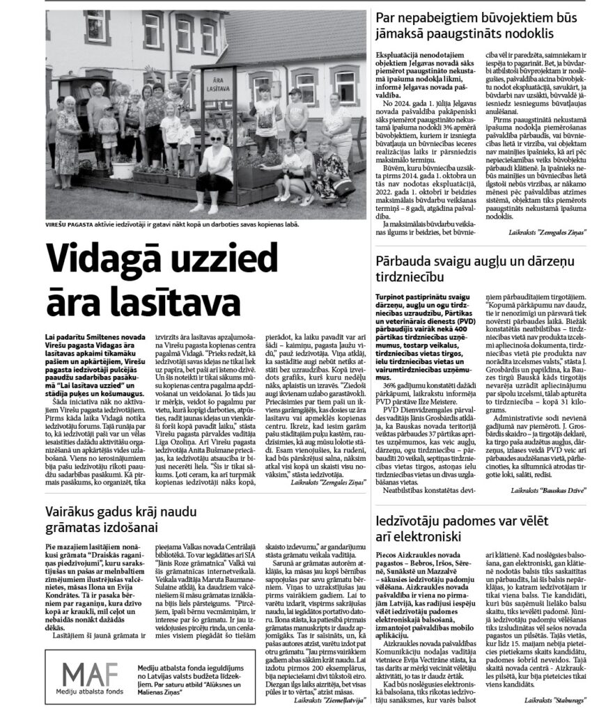 Lai padarītu Smiltenes novada Virešu pagasta Vidagas āra lasītavas apkaimi tīkamāku pašiem un apkārtējiem, Virešu pagasta iedzīvotāji pulcējās paaudžu sadarbības pasākumā “Lai lasītava uzzied” un stādīja puķes un košumaugus.