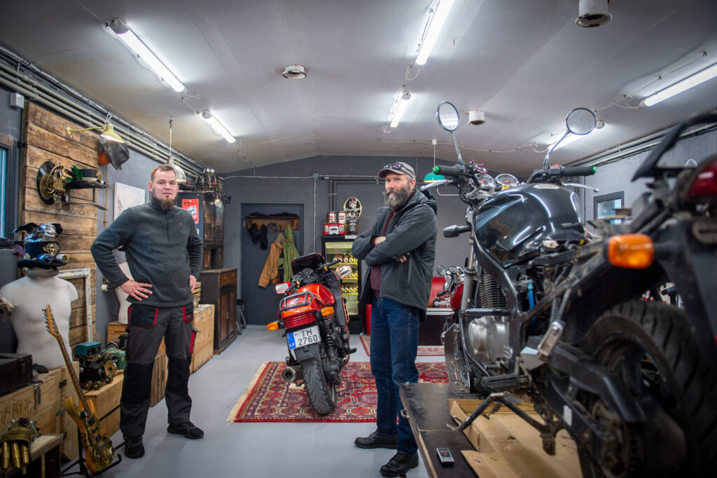 Gaitenī pie sienas vairākas melnbaltas lielformāta fotogrāfijas. Arī par tām ēkas saimniekam savs stāsts. Fotogrāfiju autors ir novadnieks Māris Ločmelis. Lielajā zālē vidū trīs motocikli, gar sienām no dažādiem metāla priekšmetiem – mūzikas instrumentu, šujmašīnu, pulksteņu detaļām un daudz kā cita izgatavoti tēli, maskas, ieroči, dizaina priekšmeti, no kuriem daudziem nav praktiska pielietojuma ikdienā. To autors ir rīdzinieks Normunds Bite.