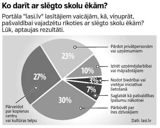 Raksta turpinājumā projektā “Sarežģītā Latvija” sadarbībā ar “Latvijas Avīzi” un citiem reģionālajiem laikrakstiem lasītājiem piedāvājam “Latvijas Avīzes” žurnālista Arta Drēziņa veidotu apkopojumu, kāda situācija ar slēgto skolu ēkām ir citviet Latvijas reģionos – ir gan veiksmīgi īstenotas ieceres, kad ēka iegūst jaunu dzīvi, un, protams, ir ne tik iedvesmojoši stāsti.