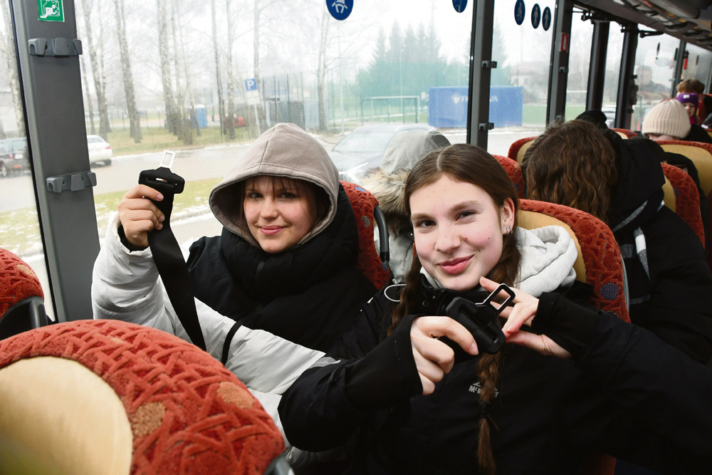Iecavas jaunietes zina, ka piesprādzēšanās busā ir svarīga pašu drošībai. Foto: Ivars Bogdanovs/”Bauskas dzīve”