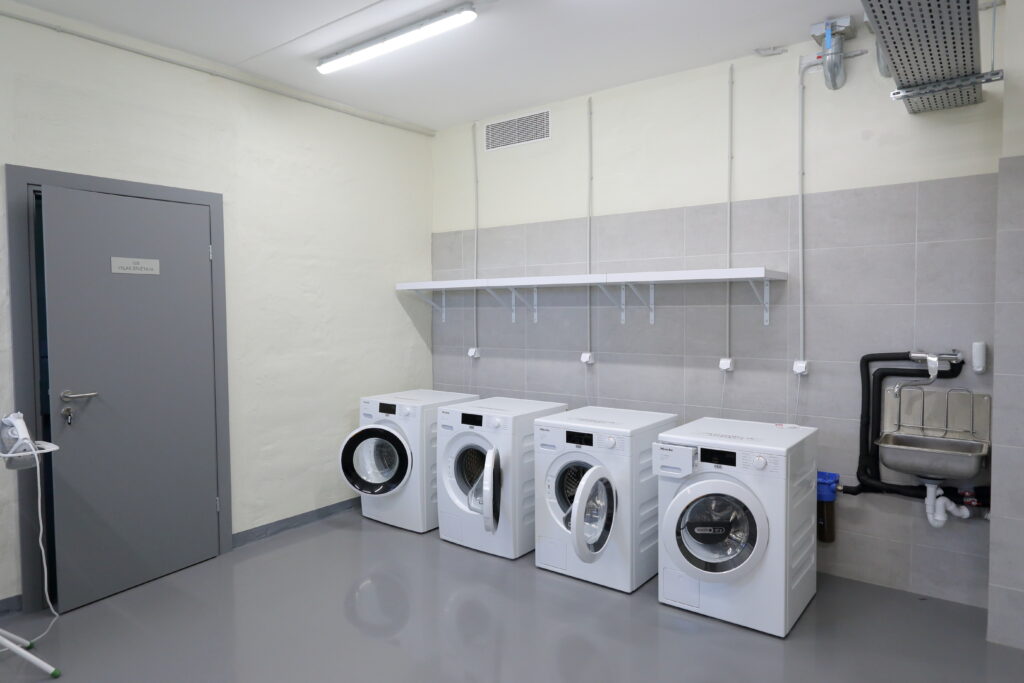 Pat virtuves izskatās tik spodras, it kā te nekad nebūtu gatavots ēst! “Tāpēc ir skolotāji, kas bērnus pieskata un māca, ka aiz sevis jāsakopj, kā arī, protams, čakli strādā apkopējas. Taču darbinieki kopj tikai koplietošanas telpas. Savas istabas skolēniem jāmazgā pašiem,” teic M. Čākurs. “Protams, dažkārt ar bērniem ir jāpacīnās.”