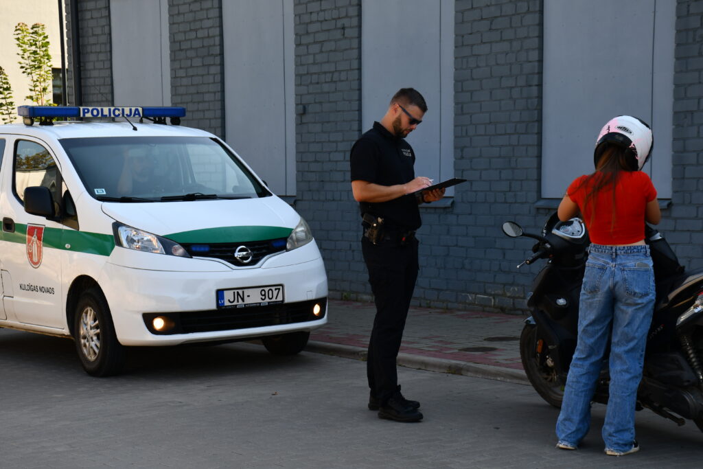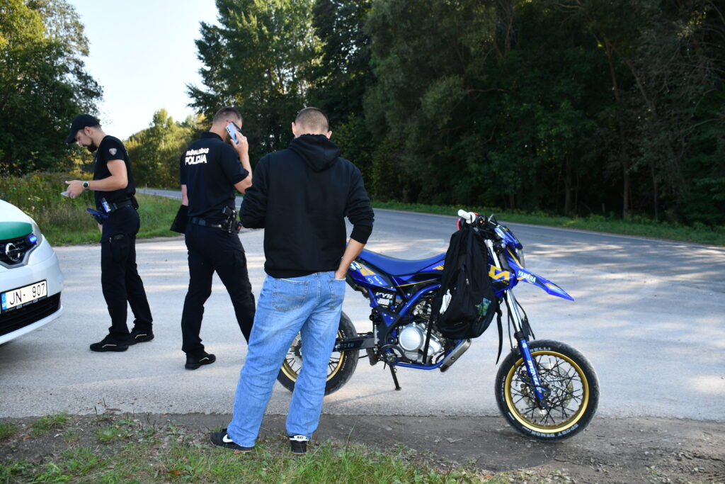 Kuldīgas pašvaldības policijas kopīgais reids ar Valsts policiju – pie skolām un citās vietās tika kontrolēts, kā jaunieši lieto moto spēkratus.