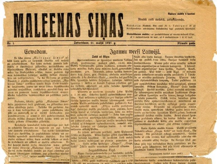 Pirms 99 gadiem, 1925. gada 14. maijā, Alūksnē Reiņa Pastalnieka tipogrāfijā tika iespiests pirmais “Malienas Ziņu” numurs. Pirmā izdevuma ievadrakstā smalki vēstīts: “Par savu mērķi jaunais laikraksts ir izvēlējies pilsonības vienošanu un stiprināšanu Malienā, atsedzot ar drošu roku visas tās strutojošās rētas, kuras gadiem ilgi nav ļāvušas Latvijas valstij brīvi izveidoties un nostiprināties. Tā kā Maliena ar centru Alūksnē ir plašs lauksaimniecības apvidus, “Malienas Ziņas” centīsies savās slejās izteikt sevišķi laucinieku, jauno un veco zemes īpašnieku patiesās vajadzības.”