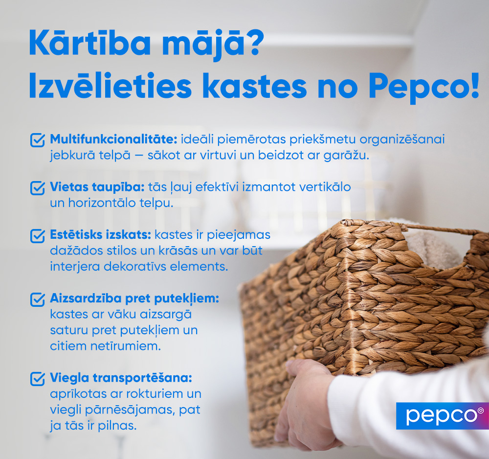ALT: Pepco infografika par uzglabāšanas kastēs priekšrocībām