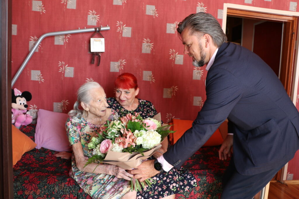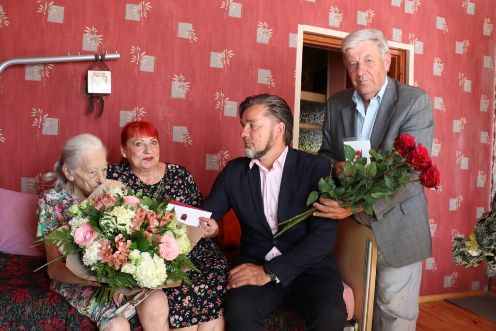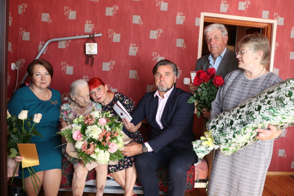 Šodien, 27. augustā,  savu 100. dzimšanas dienu svin alūksniete Aleksandra Dubkova no Miera ielas. Viņu novada pašvaldības vārdā sveica domes priekšsēdētāja vietnieks Druvis Tomsons, novada Dzimtsarakstu nodaļas vadītāja Inga Ozoliņa, ar dāvanu un ziediem bija atbraukuši arī Alūksnes Invalīdu biedrības pārstāvji Anna Tumševica, biedrības priekšsēdētājs Edvīns Svars. “Alūksnes novads ir viens no nedaudzajiem Latvijā, kur dzīvo pat vairāki tik ievērojamu vecumu sasnieguši cilvēki, un mēs ar to lepojamies,” vēlot veselību Aleksandras kundzei, teica I. Ozoliņa. A. Dubkovai no pašvaldības lielajā jubilejā naudas balva, bet Invalīdu biedrība dāvāja siltu segu. Un, protams, smalciņās jubilāres rokās sagūla arī dzimšanas dienas ziedi. Pateicība par mammītes aprūpēšanu jubilāres meitai Ņinai Kuzņecovai, tas nav viegls darbs un ne katrs to spēj.