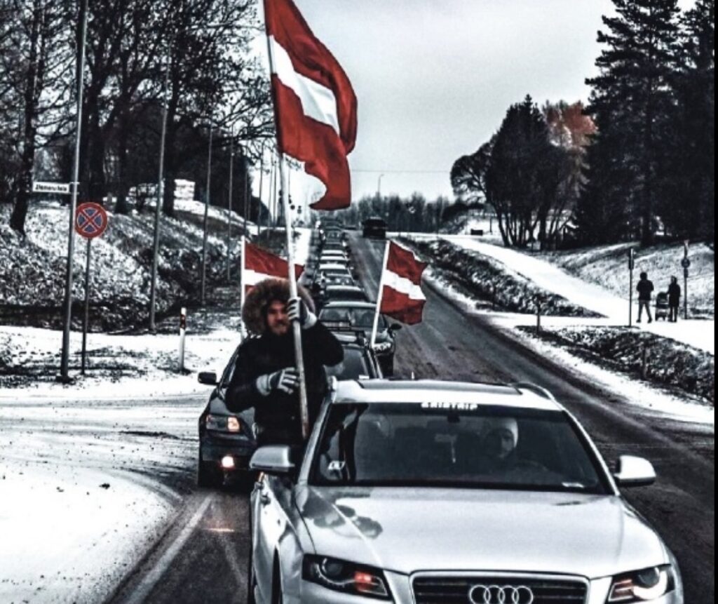 Latvijas karogu goda braucienā parasti pulcējas ap 70 automašīnām.