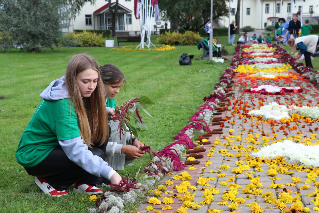 BALTIJAS CEĻA atceres pasākumos Alūksnes novadā tradicionāli veido augusta ziedu paklāju no ziediem, ko sarūpē iedzīvotāji visā novadā. Pērn tāds tapa pie Alūksnes Kultūras centra.