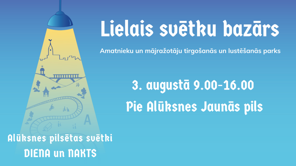 Tirgotāji aicināti pieteikties līdz 18. jūlijam (ieskaitot). Pieteikuma anketa pieejama šeit: https://myexpo.lv/event/aluksnes-pilsetas-svetku-lielais-svetku-bazars/. Atbildes vēstuli