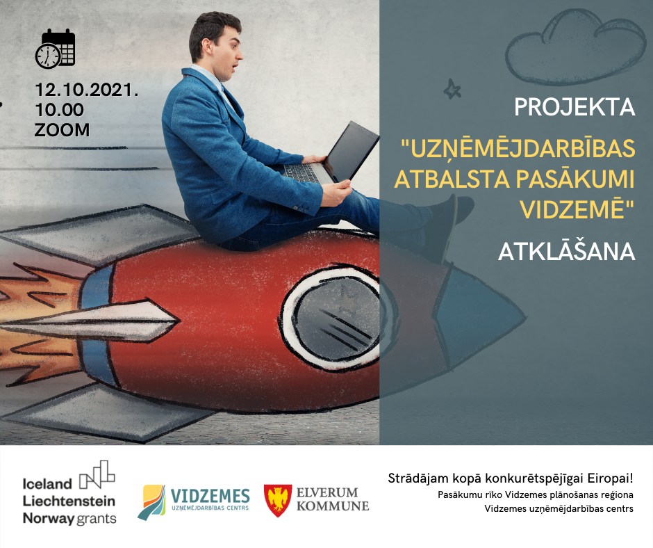 Projektu “Uzņēmējdarbības atbalsta pasākumi Vidzemes plānošanas reģionā” (Uzņēmējdarbība Vidzemē) no 2021. gada 21. jūnija līdz 2024. gada 30. aprīlim īsteno Vidzemes uzņēmējdarbības centrs sadarbībā ar Elverumas pašvaldību Norvēģijā programmā “Vietējā attīstība, nabadzības mazināšana un kultūras sadarbība”, ko līdzfinansē Islande, Lihtenšteina un Norvēģija, izmantojot EEZ grantus.