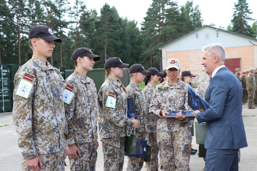 Šodien aizsardzības ministrs Artis Pabriks apmeklēja Alūksnes novada poligonā “Lāčusils” notikušās valsts aizsardzības mācības nometnes 10. klašu skolēniem un profesionālo izglītības iestāžu 1. un 2. kursu audzēkņiem noslēgumu. Ministrs katram audzēknim svinīgi pasniedza apliecību par apmācības noslēgumu.