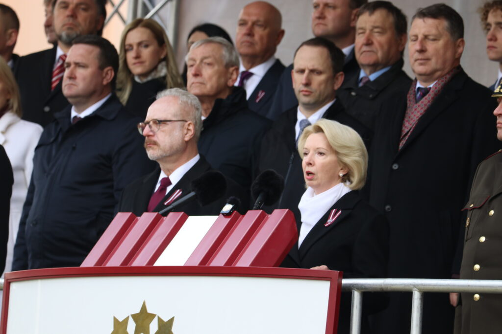 Uzrunājot militārās parādes dalībniekus un skatītājus, aizsardzības ministre uzsvēra: “Pirms 33 gadiem mēs atjaunojām Latvijas neatkarību. Mēs atguvām tiesības pašiem noteikt savu likteni. Tomēr brīvība ir ne tikai tiesības pašiem lemt savu likteni, tā ir atbildība sargāt savu valsti ik dienas”.