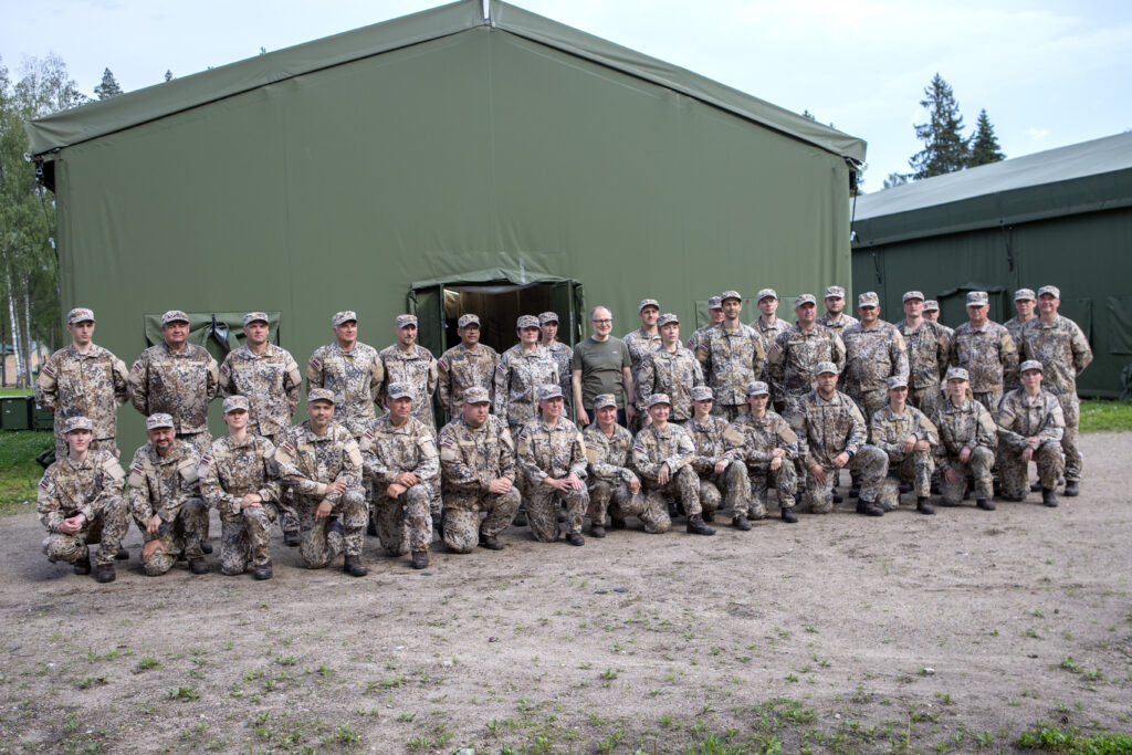 Tiekoties ar rezervistiem, ministrs pateicās par viņu drosmi, gribasspēku un atvēlēto brīvo laiku militāro prasmju apgūšanai.