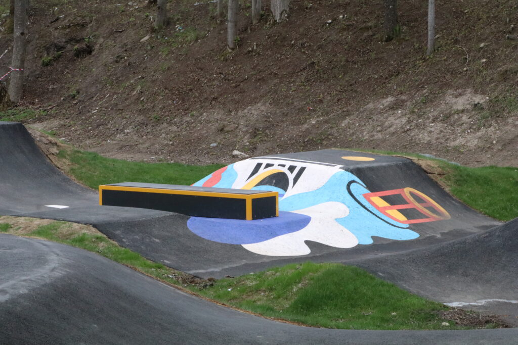 Aktīvās atpūtas parkā viena blakus otrai ir izbūvētas divas asfalta velotrases. Viena no tām būs aktīvāka un vairāk paredzēta tiem trases lietotājiem, kam patīk izpildīt dažādus trikus ar skrituļdēli, skūteri vai velosipēdu. Savukārt otra – pump track trase piemērota jebkura vecuma un fiziskās sagatavotības līmeņa braucējiem – gan pašiem mazākajiem, gan viņu vecvecākiem. Tai nav nepieciešams specifisks sporta inventārs – der gan balansa velosipēds, gan parastais pilsētas velo, arī skrituļdēlis, skrejritenis vai skrituļslidas.