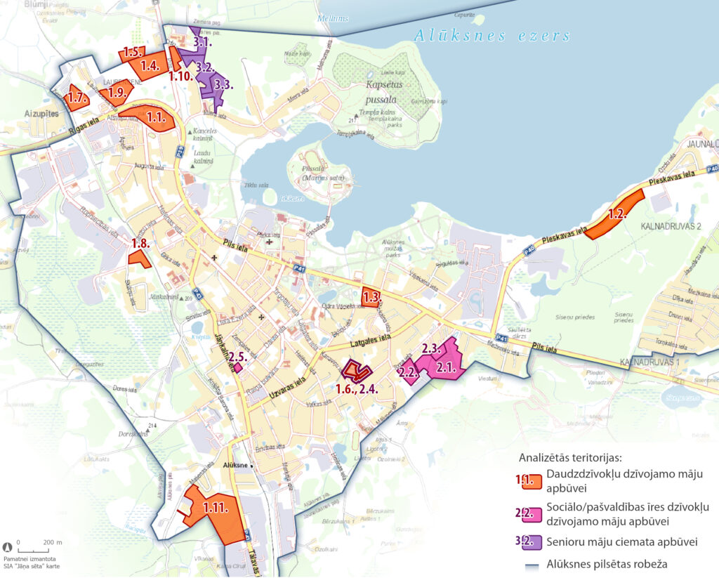 Daudzdzīvokļu māju būvniecībai izvērtēti īpašumi – Alsviķu iela 2, Siseņu priedes, Ojāra Vācieša iela 11, helikopteru nosēšanās laukums, Kanaviņu iela, Ziemeru iela 4, Ganību iela 13, Laurencenes iela 8, Pils iela 3a, Tālavas iela. Skatot labas prakses piemērus jaunu daudzdzīvokļu dzīvojamo māju projektu īstenošanā reģionos (Sigulda, Cēsis, Valmieras), vienas daudzdzīvokļu mājas mērogs varētu būt optimāli ar 24 dzīvokļiem, perspektīvā attīstot kvartālu ar četru līdz piecu māju kopumu, ap 100 dzīvokļiem, ar mūsdienīgu teritorijas labiekārtojumu. “Izvērtējot vairākus kritērijus, visaugstākais potenciāls ir zemes gabalam Alsviķu ielā 2, kur ir vairākas priekšrocības. Teritorija ir vairāk nekā trīs hektārus liela, jauna daudzdzīvokļu māja iederētos apkārtējā vidē, ir salīdzinoši laba situācija inženierkomunikāciju pieejamībā. Ierobežojošais faktors – zemesgabals nepieder pašvaldībai, bet ir nekustamo īpašumu tirgū. Vieta ir ainaviski skaista un varētu būt kā Alūksnes pilsētas vizītkarte. Ilgtermiņā tas varētu būt labās prakses piemērs,” stāstīja S. Lesiņa.