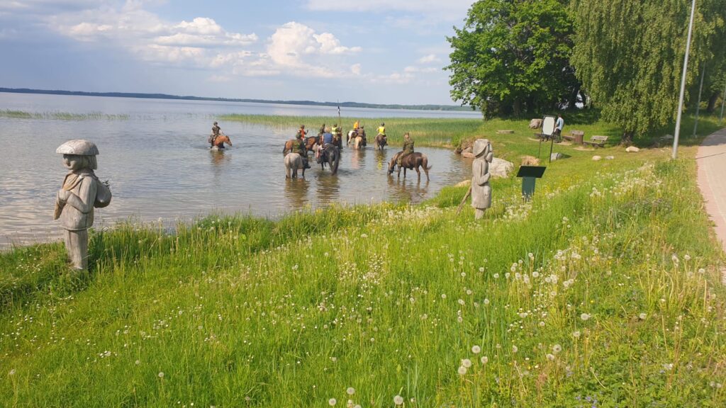 Alūksnes ezera krasta atpūtas vietā “Zirgu dzirdinātava” tiek padzirdīti nogurušie zirgi, lai rīt 11.00 skvērā pie Alūksnes Kultūras centra rādītu paraugdemonstrējumus ar paklausības un soļošanas elementiem.