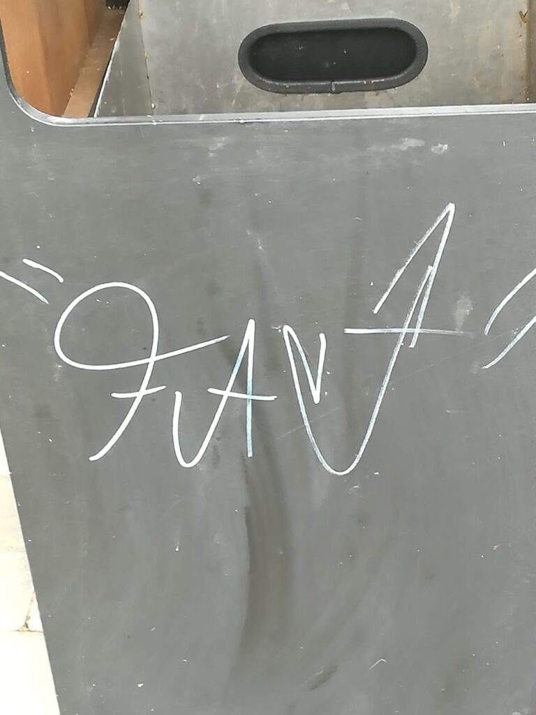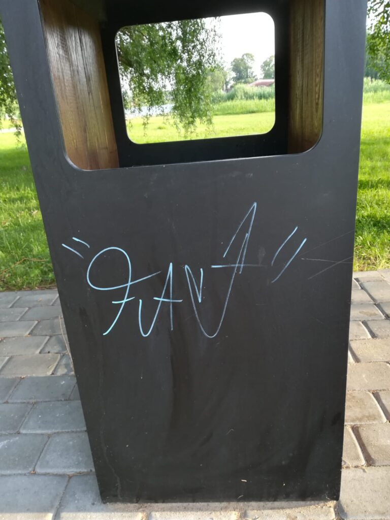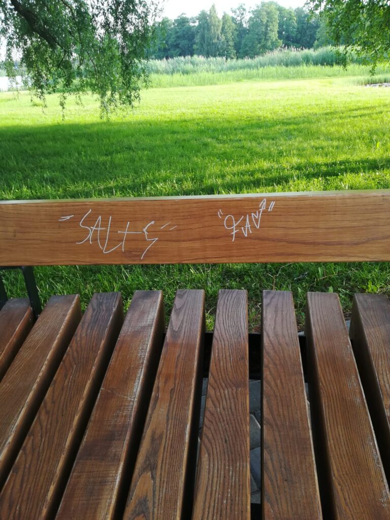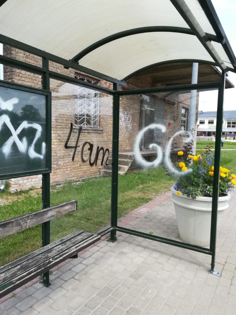 Aizvadītajā nedēļā Alūksnes ielās aprakstītas ceļa zīmes, konteineri, pieturvietas, soliņi. Alūksnes novada pašvaldības aģentūras “Spodra” uzkopšanas darbu vadītājs Kaspars Ozols ziņo, ka parādījies jauns rokraksts “apzīmētājiem”. “Aprakstīta pieturvieta Jāņkalna ielā pie Mūzikas skolas, pieturvieta pie elevatora. Dārgie soliņi ceļā uz Pilssalu. Ik dienu pats mazgāju šos brīnumus nost, ja nevar nomazgāt, tad ir jāaizkrāso. Ir vietas, kur ir novērošanas kameras, mēs fiksēsim personas, kuras apzināti kaitē Alūksnes infrastruktūrai. Šādi jau izdevies fiksēt tos, kuri apzīmēja māju Jāņkalna ielā 55. Līdzīgs rokraksts ir pie blakusesošās pieturvietas.”