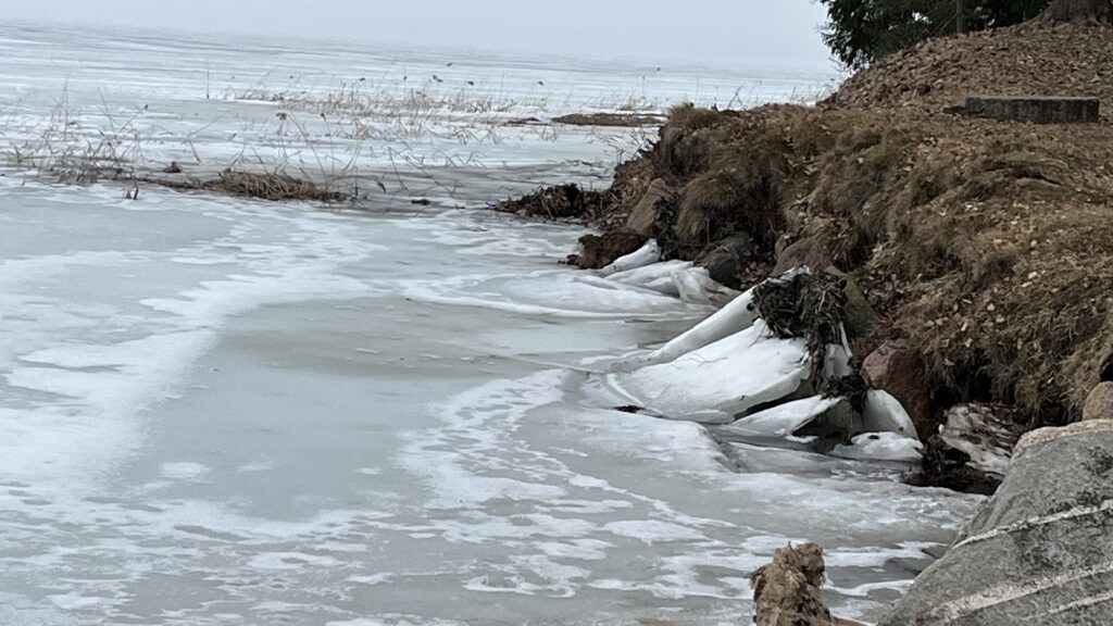 Tagad, kad sāksies pavasara atkusnis bez krasām temperatūras svārstībām, ledus kāpšana krastā vairs nenotiks. Taču, ledum sakustoties, radīsies vižņi. “Tad nu atkal būs jāraugās, no kuras puses iegriezīsies vējš un uz kuru krastu vižņus aiznesīs. To varam tikai minēt, kurā krastā postījumi būs no ledus sanesumiem. Tādēļ Būvvaldei jāaicina privāto zemju īpašnieki nebūvēt ezerā laipas uz pāļiem. Šim pasākumam nebūs jēgas krasas temperatūras maiņas laikapstākļos, kā arī tad, ja uz krastu vējš aizpūtīs ledus vižņus. Tie pāļus salauzīs. Laipas ieteicams būvēt uz pontoniem, lai ziemā tās var izvilkt kastā,” norāda M. Lietuvietis. Viņš atklāj, ka laipas uz pāļiem pašvaldība izbūvējusi tikai iekšezerā, jo valdošie parasti ir rietumu vēji, bet austrumu vēji, kas līdzi nes ledus gabalus, pavasarī iekšezerā neiepūš. Tomēr, krasi mainoties temperatūrai, arī uz šo laipu pāļiem neliela ledus ietekme ir.