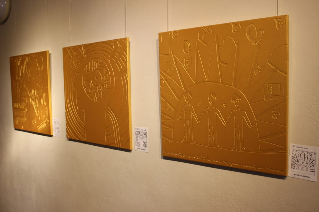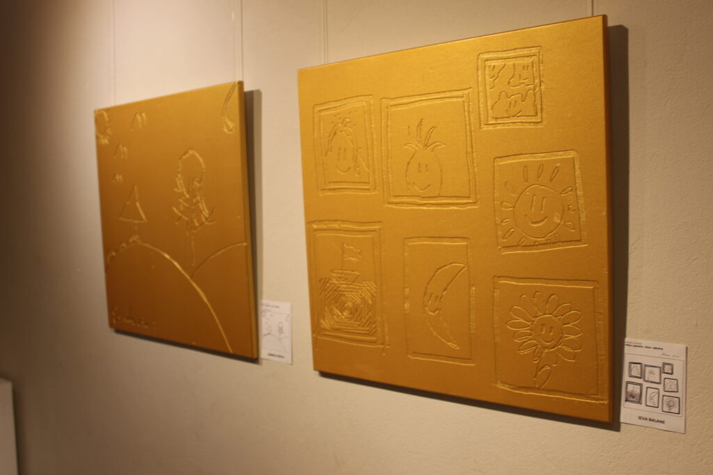 Šo milzīgo zelta disku veidoja 369 bērnu un jauniešu zīmējumi, kas atlasīti īpaši rīkotā konkursā un no grafiskiem melnbaltiem zīmējumiem pārtapuši par zeltainiem reljefiem 60 X 60 cm formātā. Izstādes “Vērtību zīmes” mākslinieciskā veidola izstrādātājs un vides objekta dizainers bija mākslinieks Artūrs Analts.