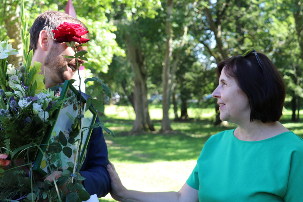 Foto: no aluksniesiem.lv arhīva/ Arita Priževoite sveic Aldi Drikānu